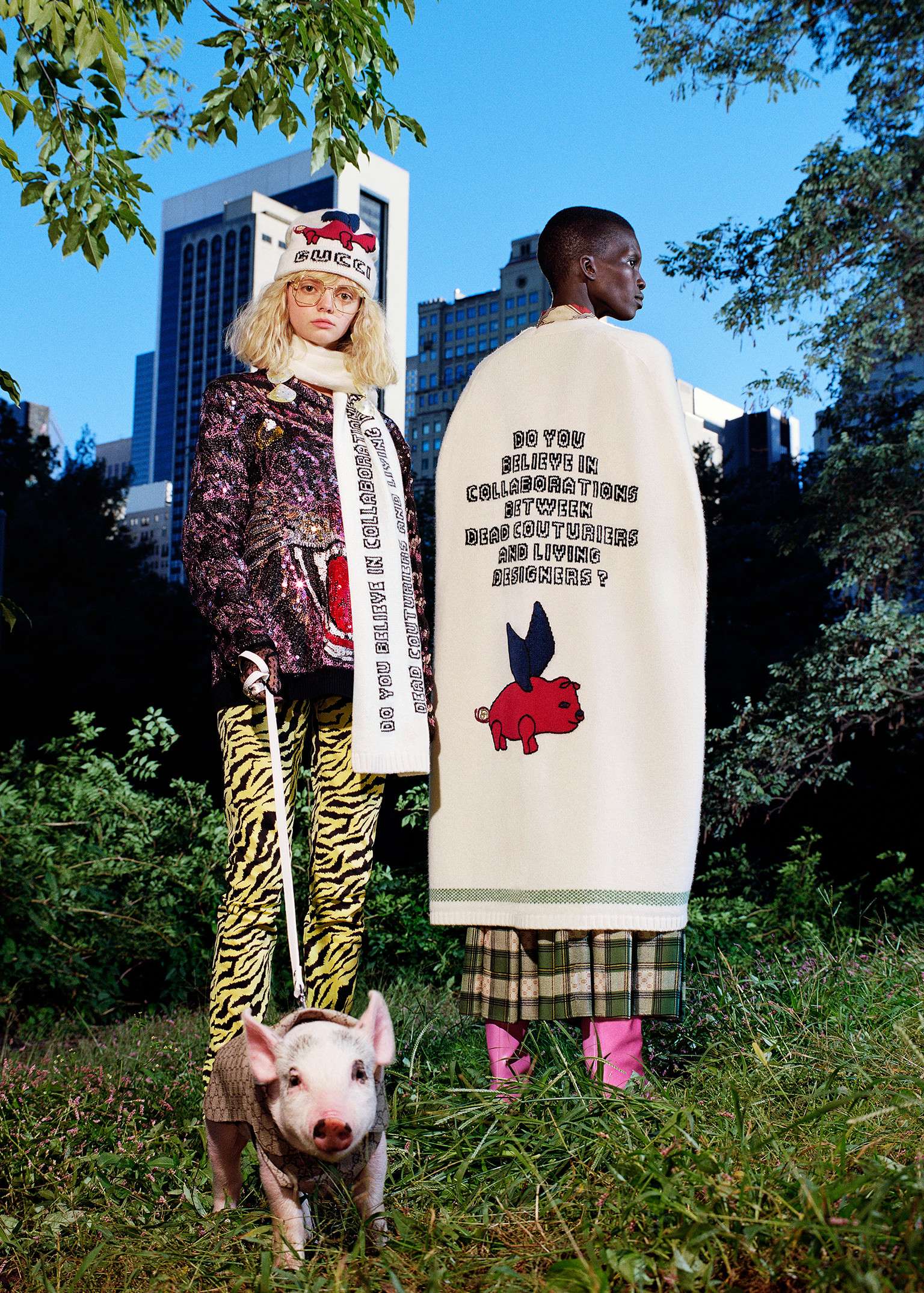 Στη νέα καμπάνια με την υπογραφή του Frank Lebon πολλά μοντέλα φωτογραφίθηκαν στη Νέα Υόρκη (φορώντας Gucci, ασφαλώς), παρέα με γουρουνάκια που τα κρατούν σαν pet, γιορτάζoντας τον «φυσικό δεσμό μεταξύ ανθρώπου και ζώου».