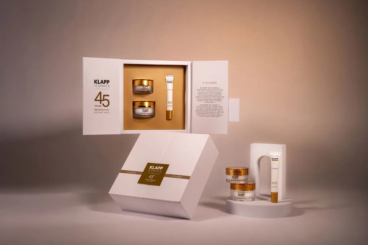 Για τις ανάγκες της επιδερμίδας σου η KLAPP έχει τη λύση! Την Iconic Collection, μια μοναδική συλλογή που συνδυάζει την παράδοση της εταιρίας με τις πιο σύγχρονες καινοτομίες. Με αφορμή αυτήν τη σημαντική επέτειο, και τα 45 χρόνια καινοτομίας στην επαγγελματική περιποίηση δέρματος, η KLAPP μας παρουσιάζει το Anniversary Edition Iconic Collection Set, της σειράς A CLASSIC, παρουσιάζοντας την κληρονομιά του brand. Και μαζί του επανέρχεται το θρυλικό A CLASSIC Booster Emulsion σε περιορισμένη έκδοση. Από το 1984, η KLAPP βασίζεται στη δραστική επίδραση της βιταμίνης Α στην κοσμετολογία. Η σειρά A CLASSIC αξιοποιεί την εξαιρετικά αποτελεσματική ρετινόλη για την ενίσχυση της παραγωγής κολλαγόνου και την αναζωογόνηση της επιδερμίδας.