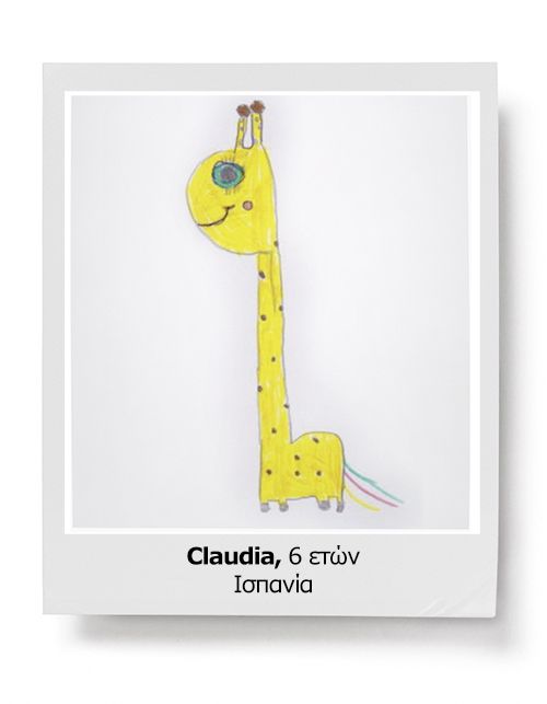 Claudia, 6 χρονών, Κανάριες Νήσοι «Αυτή η ψηλή, κίτρινη καμηλοπάρδαλη, με ουρά στα χρώματα του ουράνιου τόξου είναι τόσο συμπαθητική. Αυτό το λούτρινο παιχνίδι θα γίνει ένας καλός φίλος για πολλά παιδιά».