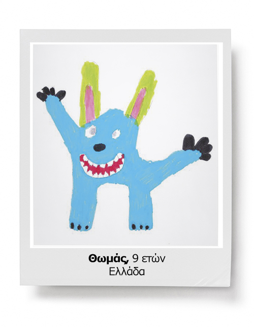 Θωμάς, 9 χρονών, Ελλάδα«Πιστεύουμε ότι αυτό το μπλε τερατάκι είναι απλά αξιολάτρευτο, σχεδόν μας φωνάζει – Γειά σου! Σε αγαπώ!»