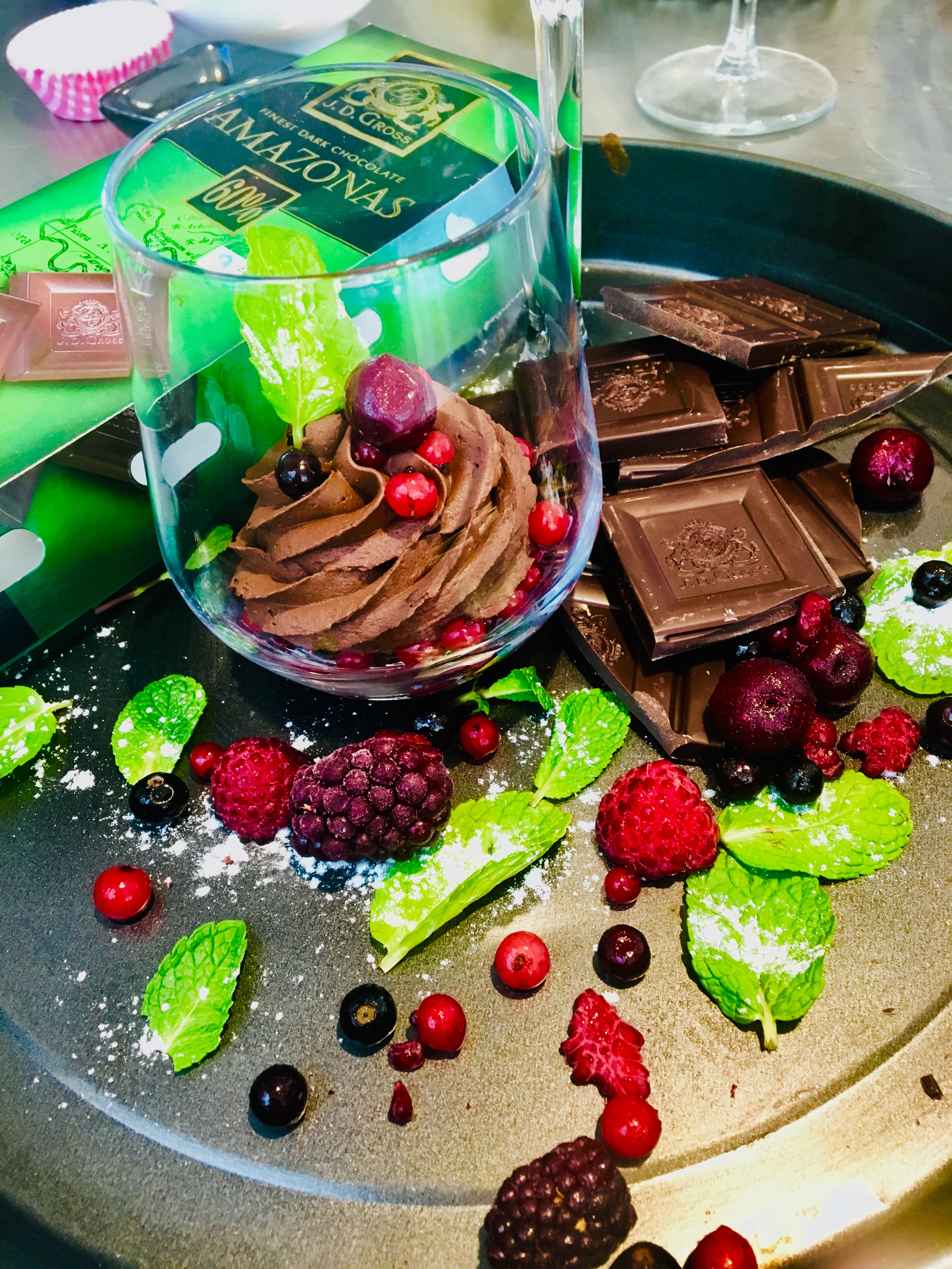 Ο Κωνσταντίνος Πετεβίνος, ο σεφ, μάς δίδαξε step by step τις τρεις γευστικότατες συνταγές του. Έκανε την αρχή με μια εύκολη και ευφάνταστη συνταγή για Μους σοκολάτας με φρούτα τους δάσους και σοκολάτα.