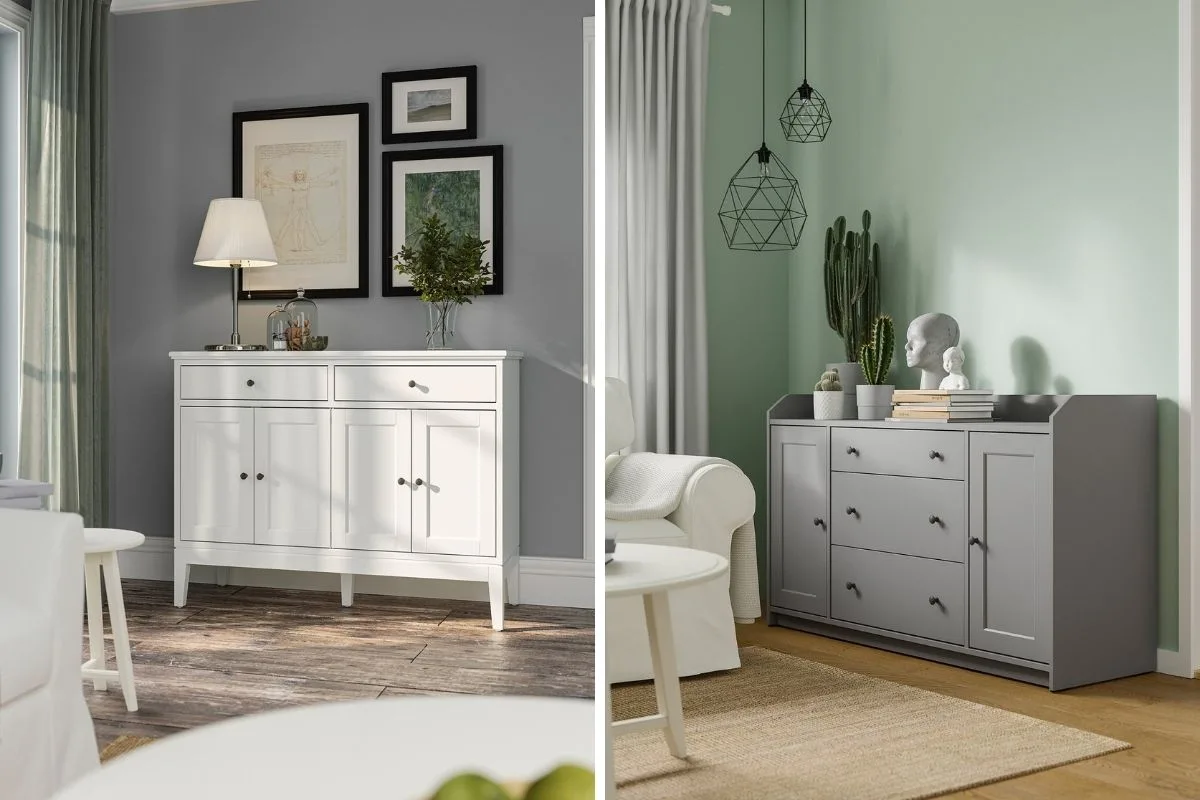 Η ακαταστασία στο καθιστικό δεν δημιουργείται επειδή είσαι ακατάστατος. Δημιουργείται επειδή τα πράγματα δεν έχουν ξεκάθαρη θέση. Τηλεκοντρόλ, φορτιστές, βιβλία, παιχνίδια, χαρτιά, μικροαντικείμενα… όλα αυτά ψάχνουν μια γωνιά και τελικά την βρίσκουν πάνω στο τραπεζάκι. Η λύση είναι να δημιουργήσεις μικρές «ζώνες» αποθήκευσης που να ταιριάζουν στην καθημερινότητά σου. Για παράδειγμα, ένας μπουφές με συρτάρια στο καθιστικό είναι από τις πιο λειτουργικές κινήσεις που μπορείς να κάνεις. Σε ένα ή δύο συρτάρια μπορούν να μπουν όλα τα μικρά «ένοχα μυστικά» του χώρου: καλώδια, φορτιστές, μπαταρίες, χαρτικά, ακόμα και επιτραπέζια. Εξωτερικά, δείχνει κομψό. Εσωτερικά, κάνει χώρο στο χάος!