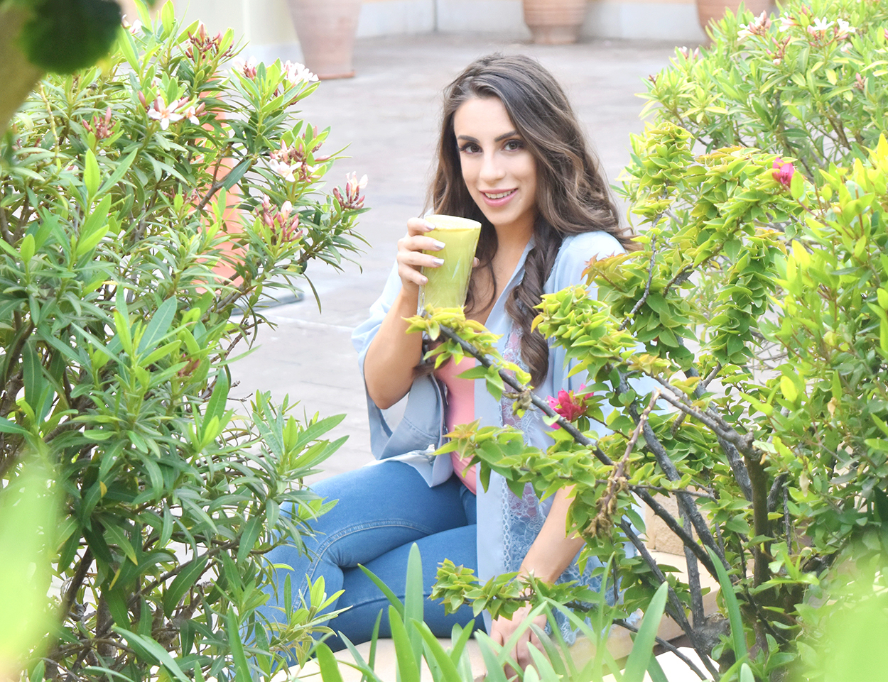 Η Άννα Κορτέση δίνει το καλύτερο παράδειγμα, απολαμβάνοντας τον πράσινο χυμό της.