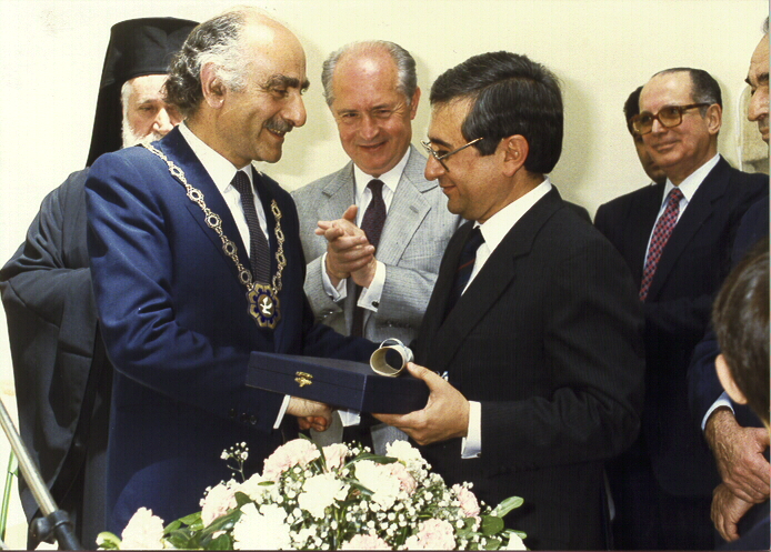 Οι οραματιστές και οι δημιουργοί του Μουσείου, ο πρώην Δήμαρχος Λευκωσίας Λέλλος Δημητριάδης και ο πρώτος πρόεδρος του Ιδρύματος Α.Γ. Λεβέντη Κωνσταντίνος Λεβέντης