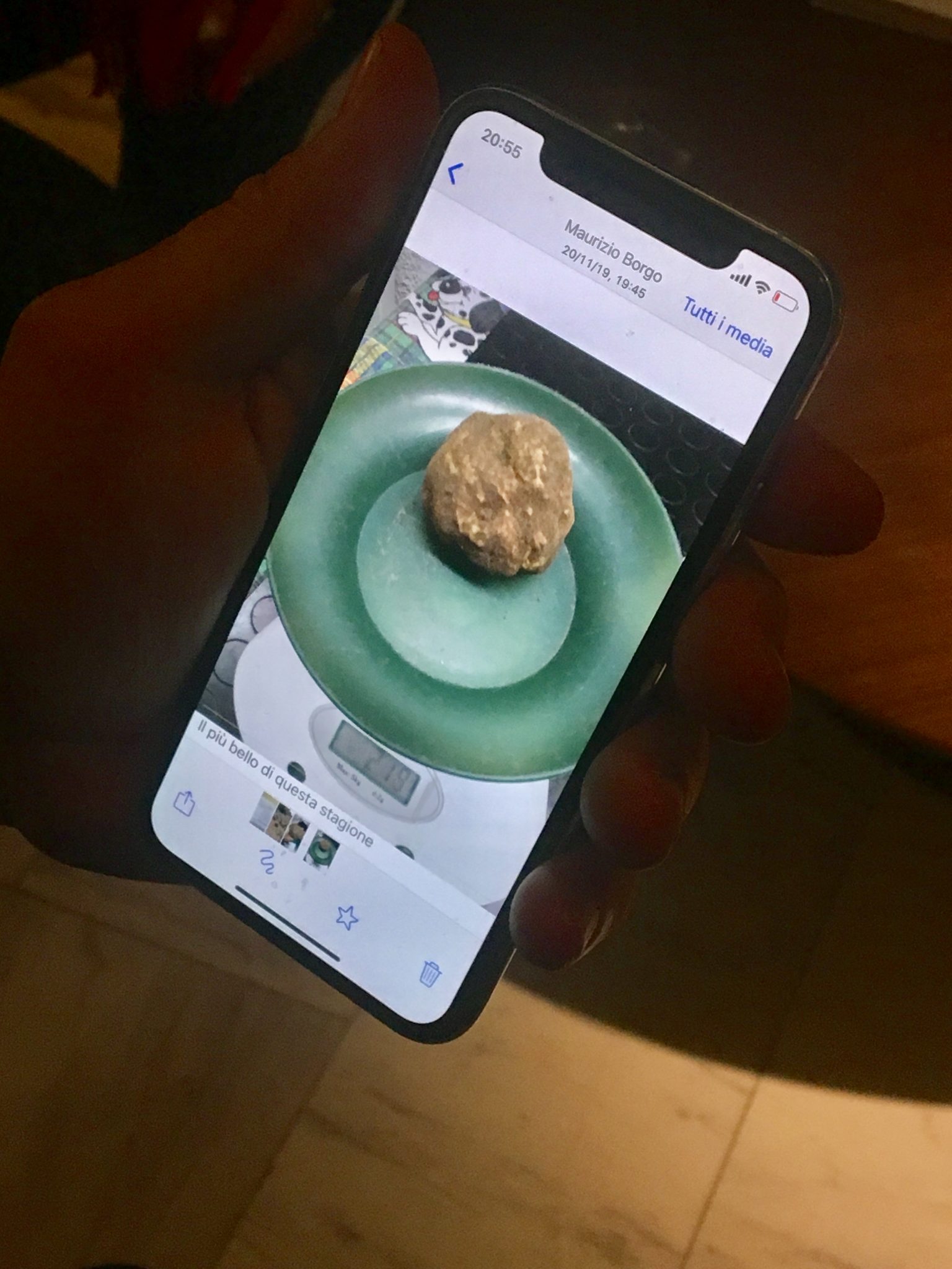 Χάρη στην τεχνολογία είχαμε την ευκαιρία να δούμε σε επίσημη πρώτη το πιο πολύτιμο απόκτημά του… Μια τεράστια λευκή τρούφα που μόλις είχαν ανακαλύψει οι “κυνηγοί” του στην Ούμπρια, την πατρίδα του.