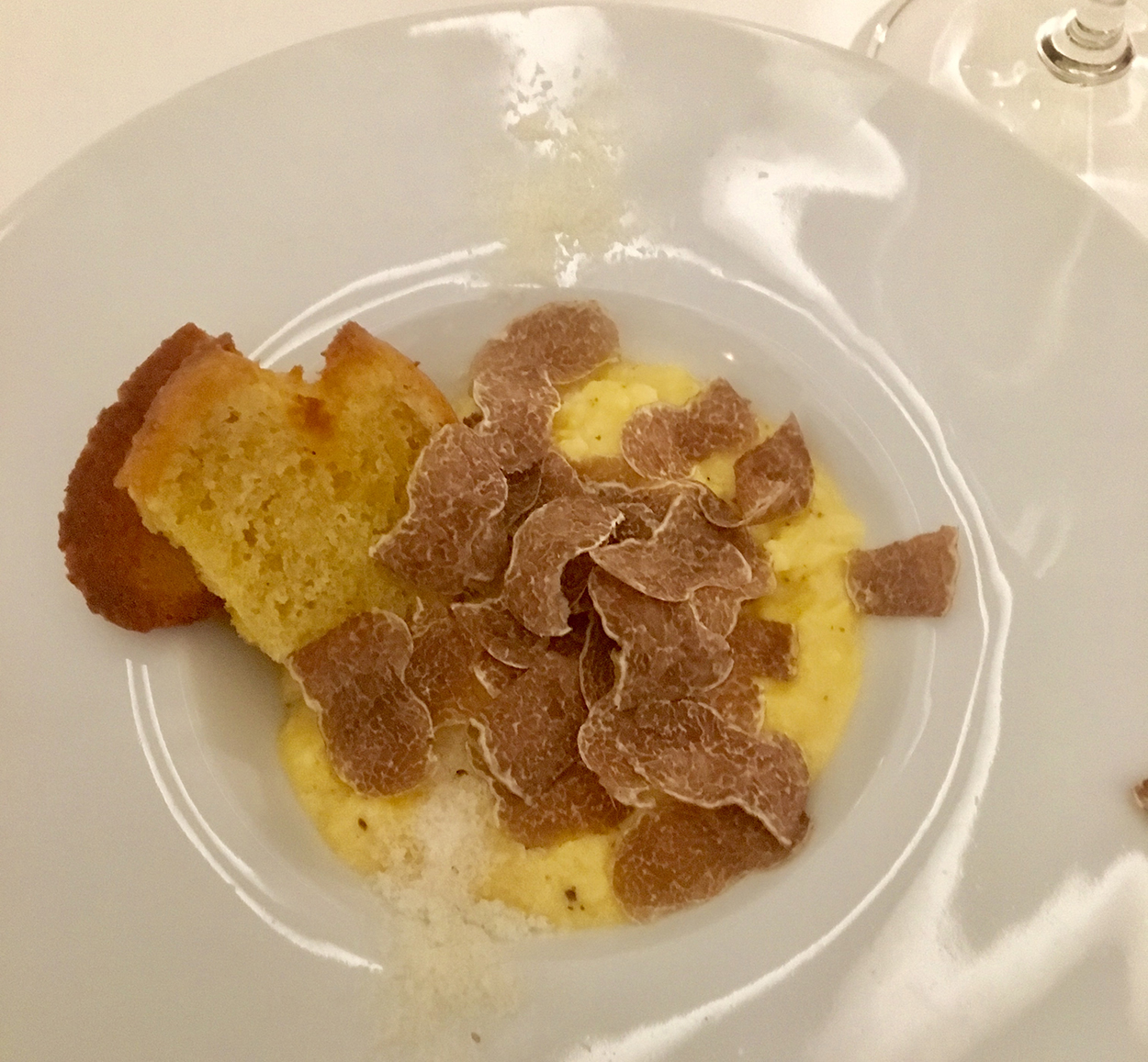 Και βέβαια κατά τη διάρκεια του δείπνου μας, είχαμε την τύχη να γευτούμε μεταξύ άλλων και το μοναδικό βούτυρο λευκής τρούφας, που κατασκευάζει η San Pietro a Pettine.