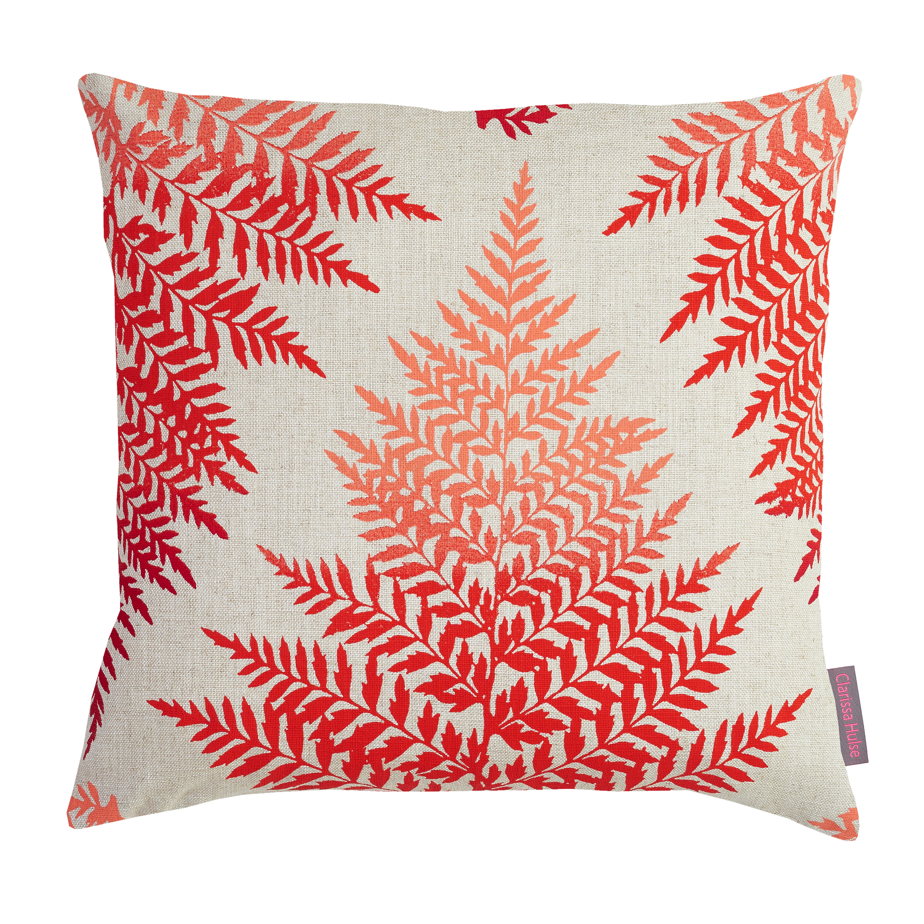 Το γεωμετρικό design έδωσε στα μικρά φύλλα φτέρης μια ξεχωριστή νότα. Η δημιουργός τους, η Clarissa Hulse, από την Πράγα (αλλά με ελληνίδα μητέρα), εμπνέεται από τη μοναδικότητα της φύσης και σχεδιάζει πραγματικά έργα τέχνης. Γι’ αυτό το μαξιλαράκι της επέλεξε να αποτυπώσει στο 100% λινό ύφασμα του τις αποχρώσεις του κοραλί και του καμένου πορτοκαλιού που θα δώσει στο χώρο σας μια ιδιαίτερη χροιά. Είναι γεμάτο με υψηλής ποιότητας φτερά πάπιας και θα το βρείτε σε μέγεθος 50cm x 50cm.