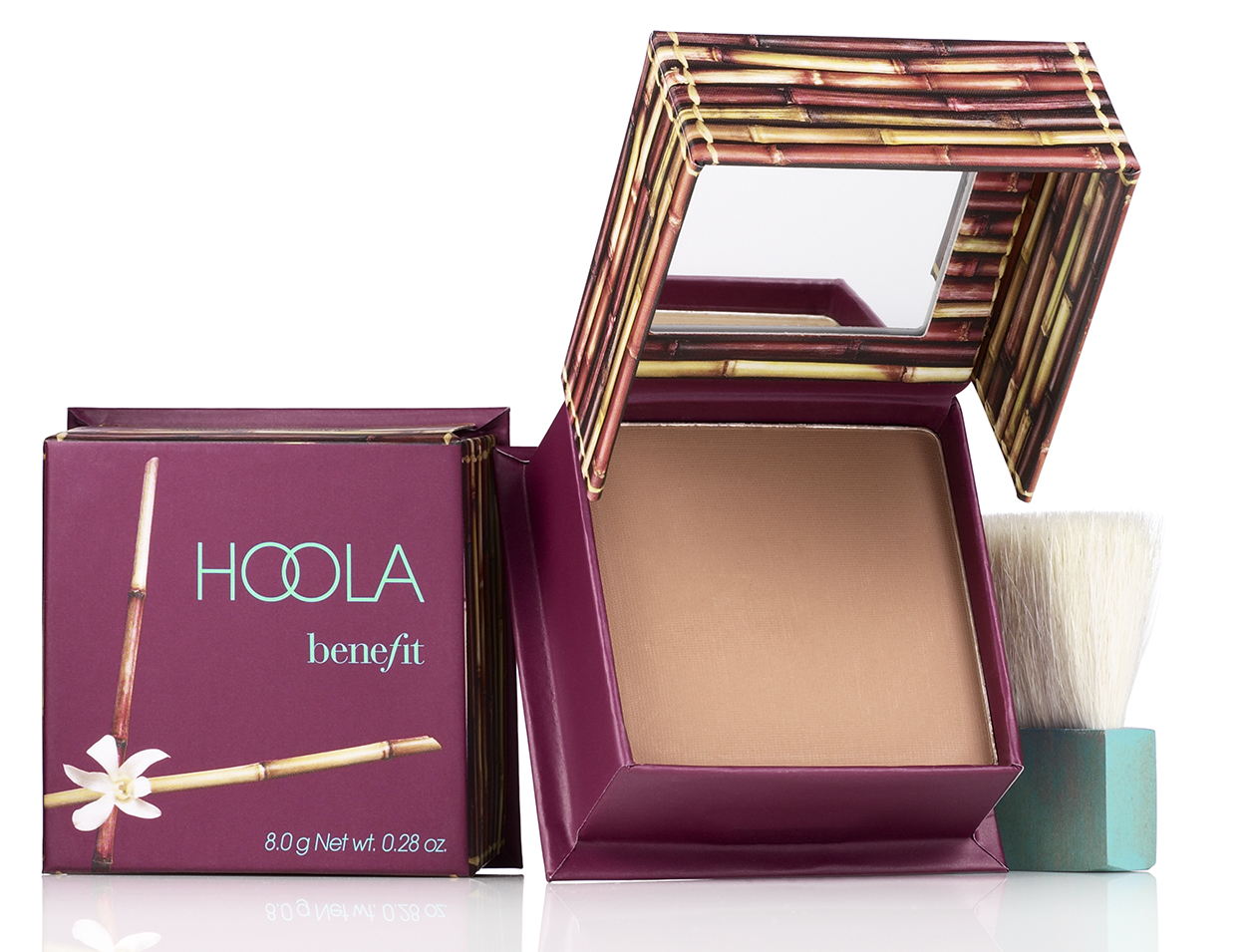 Η βραβευμένη ματ πούδρα για το πρόσωπο, θα σου προσφέρει φυσικό μαύρισμα. Με απαλή, προσαρμόσιμη σύνθεση και ματ αποτέλεσμα, περιλαμβάνει από ανοιχτές μέχρι σκούρες αποχρώσεις για να μπορέσεις να αποκτήσεις φυσικό μαύρισμα. Περιλαμβάνεται ενσωματωμένο καθρεφτάκι κι ένα πινέλο πούδρας για φυσικό μαύρισμα και ομοιόμορφη εφαρμογή. Και να θυμάσαι: Δεν χρειάζεσαι πια τον ήλιο και την άμμο! Περνάς την απόχρωση της Hoola που σου ταιριάζει σε όλο το πρόσωπο για ματ, φυσική ηλιοκαμένη όψη.