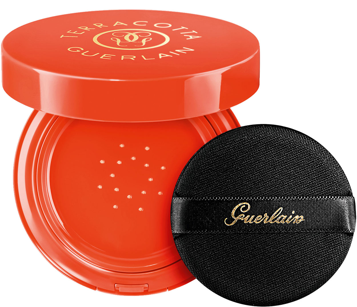 Terracotta Cushion SPF 20, Guerlain, υγρό foundation σε μορφή cushion, για απαλό μαύρισμα, ενισχύει την ακτινοβολία της επιδερμίδας, ενώ προσφέρει και αντηλιακή προστασία.