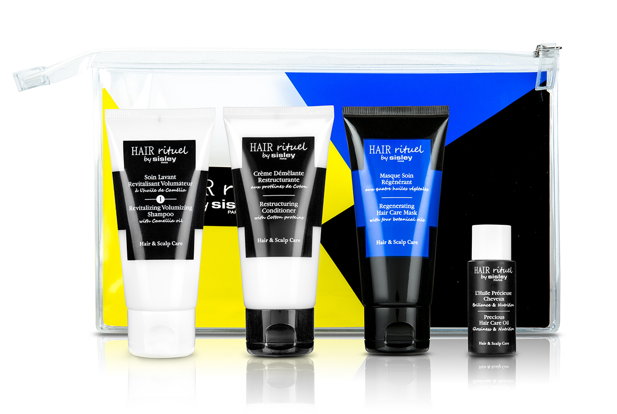 * Τα Hair Rituel discovery kits, Sisley με travel size προϊόντα είναι ότι χρειάζεστε για να προστατεύσετε και να φροντίσετε τα μαλλιά σας κατά τη διάρκεια των διακοπών σας. Φροντίζουν συνολικά τα μαλλιά σας (τις ρίζες, αλλά και τις τρίχες των μαλλιών), αφού περιέχουν ισχυρή συγκέντρωση βοτανικών εκχυλισμάτων και αιθέριων ελαίων, ορυκτών, βιταμινών και πρωτεΐνες, συστατικά που τα ζωντανεύουν και τους δίνουν λάμψη. Και έχουν μια μοναδική και φρέσκια μυρωδιά, που συνδυάζει εσπεριδοειδείς, ξύλινες νότες από verbena, λεμόνι, ροδάκινο και amber. Όλα τα προϊόντα επαναφέρουν τη ζωντάνια στα μαλλιά, ενώ προστατεύουν το χρώμα τους.