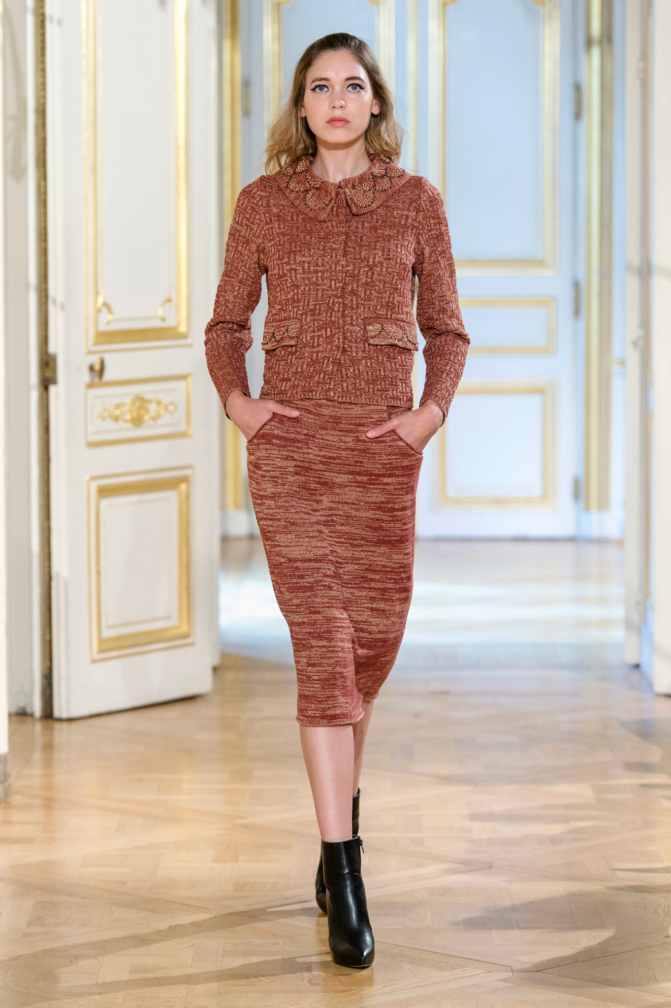 Ανάμεσα στις δημιουργίες της, ξεχώριζει μια εσάρπα, που στο φινίρισμά της έχει κρόσσια από βελούδινες, μεταλλικές και μάλλινες κλωστές. Κάθε φούντα για τα χειροποίητα κρόσσια, περιλαμβάνει 13 ίσες κλωστές, που ολοκληρώθηκαν μετά από 11 ώρες. Αυτή η λεπτομέρεια, είναι αρκετή για να αντιληφθεί κανείς την ανωτερότητα της Haute Couture συλλογής από την Prêt-à–porter .