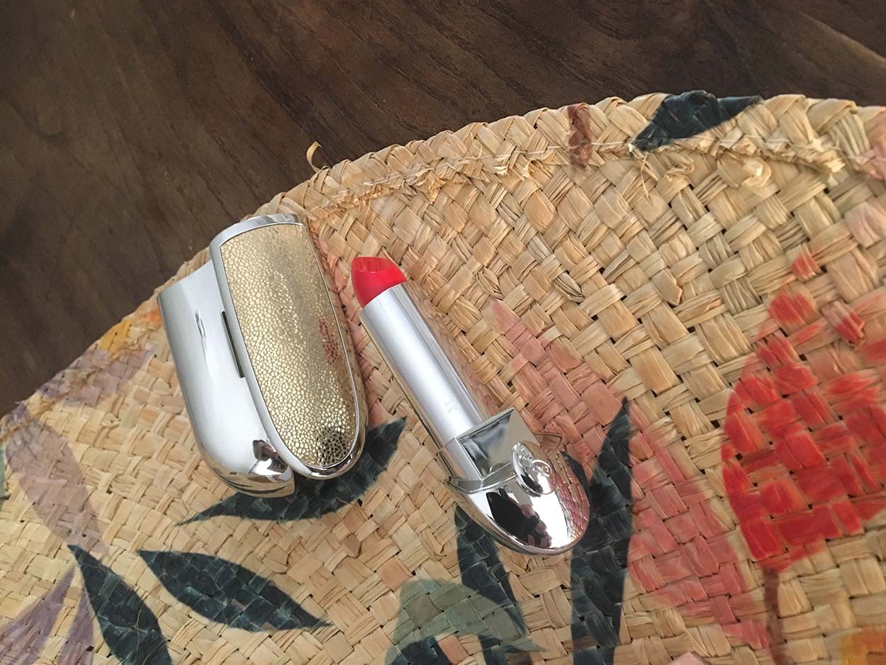Το κραγιόν Rouge G De Guerlain, που χάρη στο διπλό καθρεφτάκι που σχεδίασε ο παριζιάνικος κοσμηματοπώλης Lorenz Bäumer, εντυπωσίασε τη Μαρία. Η εξαιρετικά αισθησιακή υφή του, από τη συλλογή «IT-COLOR» συνδυάζει το ζωντανό χρώμα με την περιποιητική φροντίδα των χειλιών.