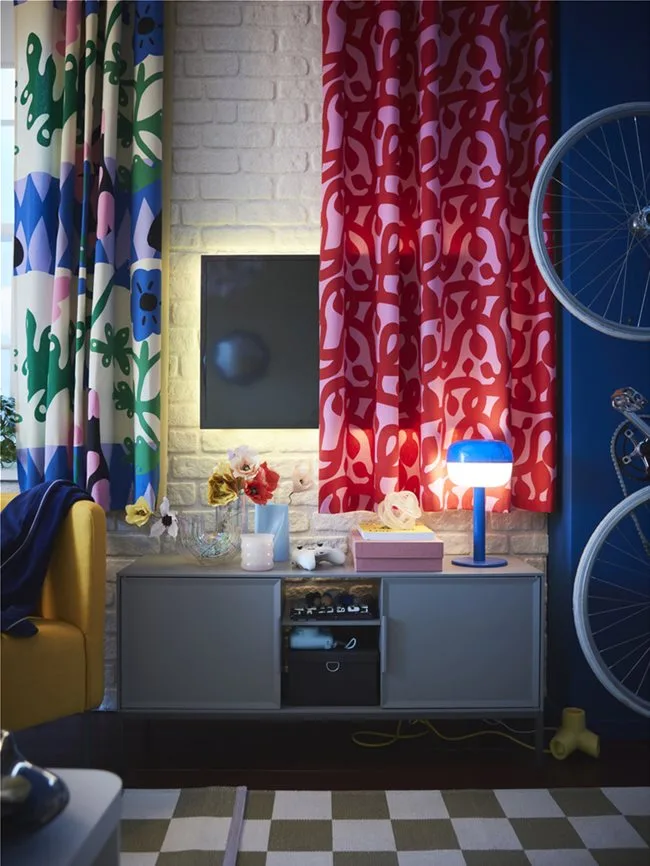 Το σαλόνι δεν είναι μόνο για καφέ και κουβέντα. Μπορεί να γίνει και αίθουσα σινεμά με λίγη φαντασία και… τα κατάλληλα σνακ. Στην ΙΚΕΑ έχεις στη διάθεσή σου υφάσματα, τα οποία κρεμάζοντάς τα μπροστά από την τηλεόραση, σαν κουίντα, βάζεις μια κινηματογραφική νότα στο σαλόνι. Πάρε και το ποπκόρν και άραξε!