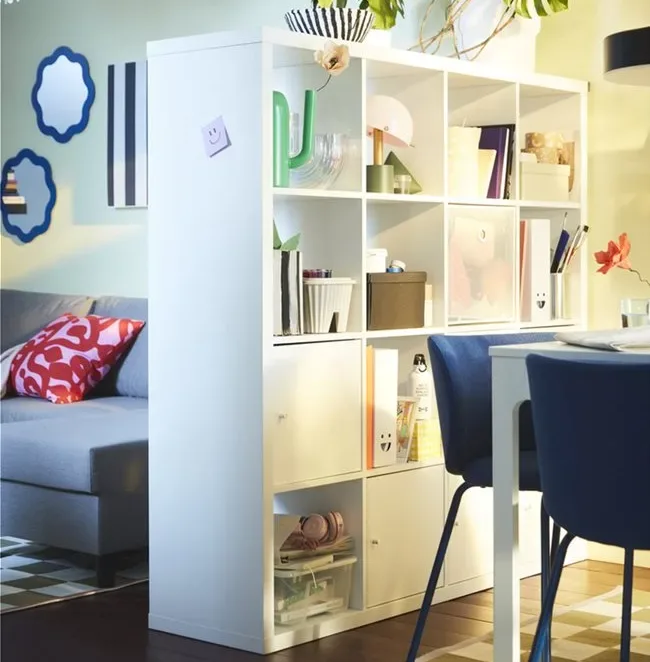 Μήπως το σαλόνι σου καλύπτει πολλές λειτουργίες, όπως τραπεζαρία, playroom, γραφείο; Τότε βρες διαχωριστικές λύσεις στην ΙΚΕΑ, ώστε να το χωρίσεις με κάποια έπιπλα-κλειδιά, όπως πρακτικές ραφιέρες, που θα λειτουργήσουν ως «σύνορα». Με αυτή την τεχνική κερδίζεις εφόσον το σαλόνι σου φαίνεται και είναι πιο λειτουργικό και μελετημένο και ταυτόχρονα φαίνεται και πιο μεγάλο, αφού δεν είναι όλα όπως να ‘ναι κι όπου να ‘ναι. Ε και φυσικά, το καλύτερο είναι ότι δεν χρειάζεται να χτίσεις τοίχους και να σπάσεις τον χώρο σου σε κουβούκλια.