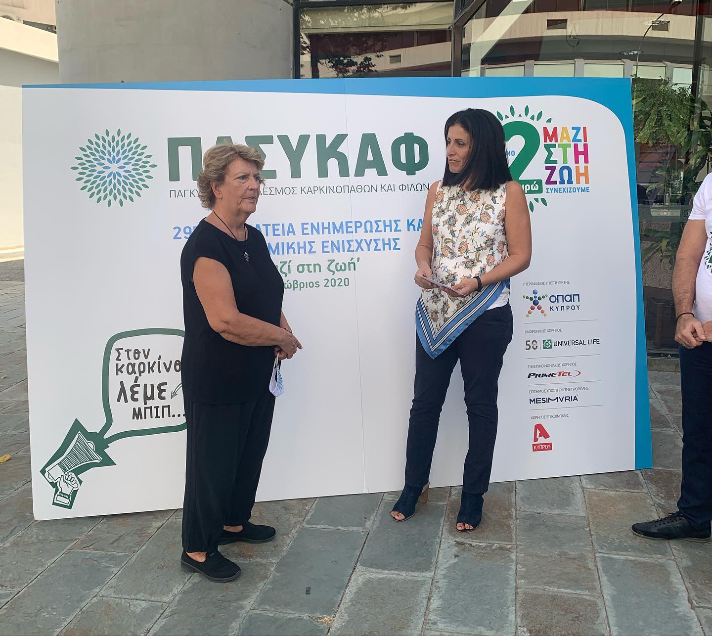 Μεγάλη επιτυχία σημείωσε η πρώτη ημέρα του εράνου του Παγκύπριου Συνδέσμου Καρκινοπαθών και Φίλων ΠΑΣΥΚΑΦ που πραγματοποιήθηκε την Τετάρτη 7 Οκτωβρίου, 2020 στο πλαίσιο της εκστρατείας ενημέρωσης και οικονομικής ενίσχυσης ‘Μαζί στη ζωή’. Η επίσημη έναρξη έγινε από την Πρόεδρο Δρ. Άννα Αχιλλεούδη, τα Μέλη του Δ.Σ και την Διοίκηση και μέλη του ανθρωπίνου δυναμικού του Συνδέσμου, στο προαύλιο του ‘Διαχρονικού Χορηγού’ του Συνδέσμου Universal Life.