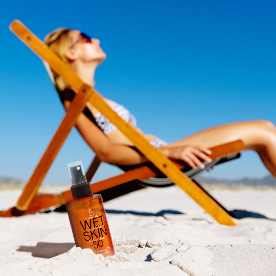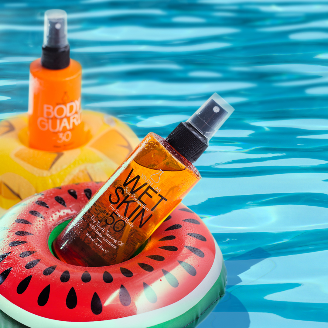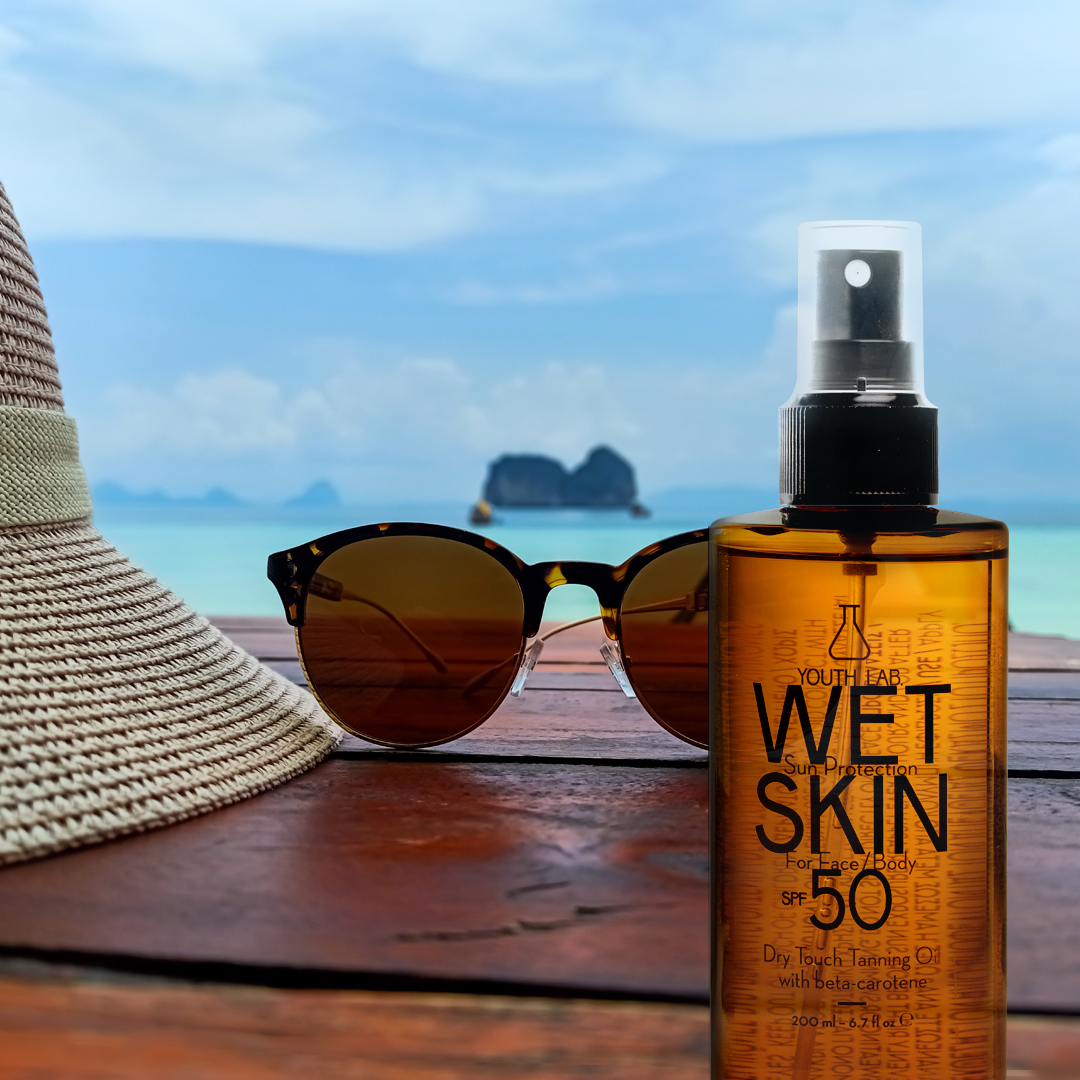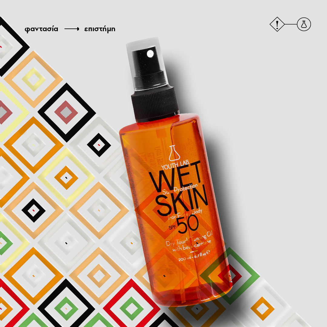 Στην ίδια κατηγορία για πρόσωπο και σώμα, η YouthLab κυκλοφόρησε και το Wet Skin Sun Protection SPF 50. Πρόκειται για ένα πρακτικό αντηλιακό ξηρό λαδάκι πολύ υψηλής προστασίας με ενεργοποιητή μαυρίσματος, ανθεκτικό στο νερό και τον ιδρώτα. Γι’ αυτό και είναι το ιδανικότερο προϊόν για τους λάτρεις του νερού και των σπορ.