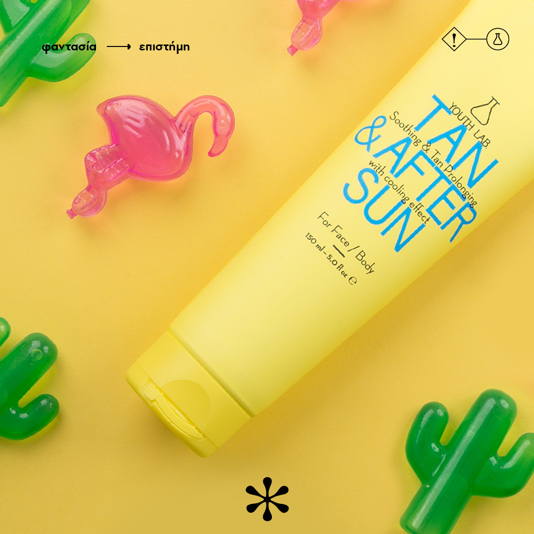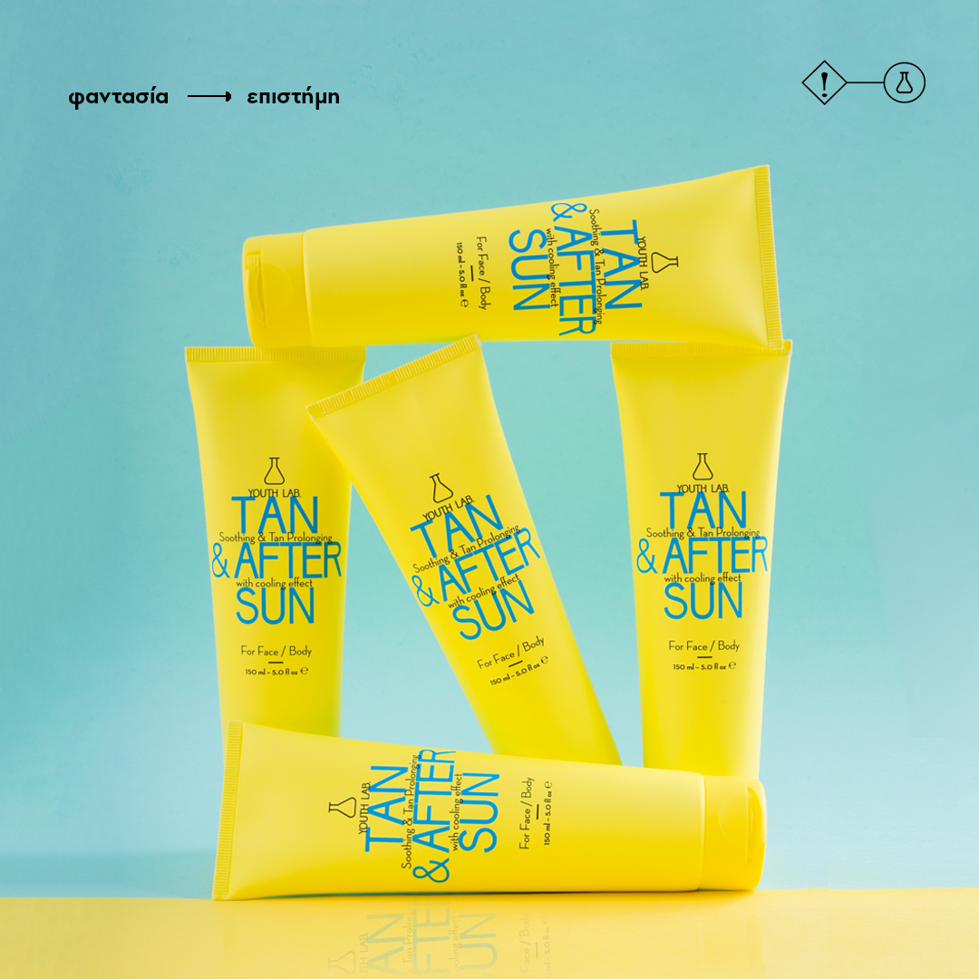 Αυτή είναι μια εντελώς νέα πρωτοτυπία της YouthLab. Το Tan & After Sun, είναι ένα κρεμοτζέλ με “cooling effect” που ενισχύει και παρατείνει το φυσικό μαύρισμα. Παράλληλα, επανορθώνει και καταπραΰνει τους ερεθισμούς, αφήνοντας το δέρμα λαμπερό και ενυδατωμένο.