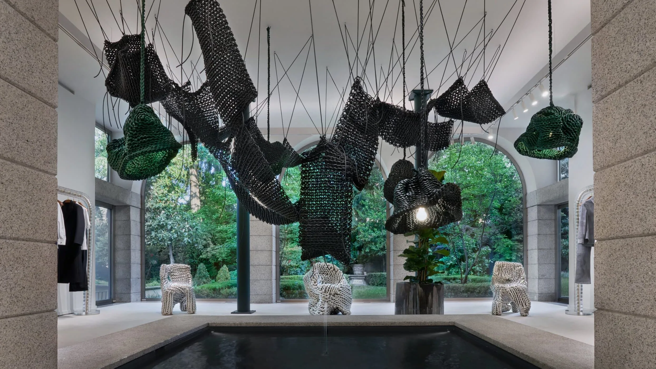 Η Bottega Veneta παρουσιάζει το Lightful σε συνεργασία με τον Kwangho Lee, στο κατάστημα της Via Sant’Andrea, μετατρέποντας την ύφανση σε φωτεινή γλυπτική εμπειρία. Δερμάτινα κορδόνια διαμορφώνουν δομές που αλληλεπιδρούν με το φως και τη σκιά, δημιουργώντας έναν χώρο όπου το υλικό αποκτά ρυθμό και ένταση. Η συνεργασία συνεχίζει έναν μακροχρόνιο δημιουργικό διάλογο γύρω από τη χειροτεχνία ως εξελισσόμενη διαδικασία.