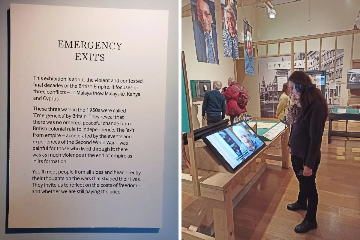 Η έκθεση “Emergency Exits: The Fight for Independence in Malaya, Kenya & Cyprus”, στο Imperial War Museum στο Λονδίνο, ήταν η πρώτη έκθεση του μουσείου, που επιχείρησε να φωτίσει μια περίοδο που η βρετανική κυβέρνηση της εποχής χαρακτήριζε ως «emergencies» – καταστάσεις εκτάκτου ανάγκης – παρουσιάζοντας πώς οι αγώνες ανεξαρτησίας σε πρώην βρετανικά αυτοκρατορικά εδάφη, μετά το τέλος του Β’ Παγκοσμίου Πολέμου- στη Μαλαισία, την Κένυα και την Κύπρο- διαμόρφωσαν όχι μόνο τις ίδιες τις χώρες, αλλά και τη σύγχρονη Βρετανία και τον υπόλοιπο κόσμο.