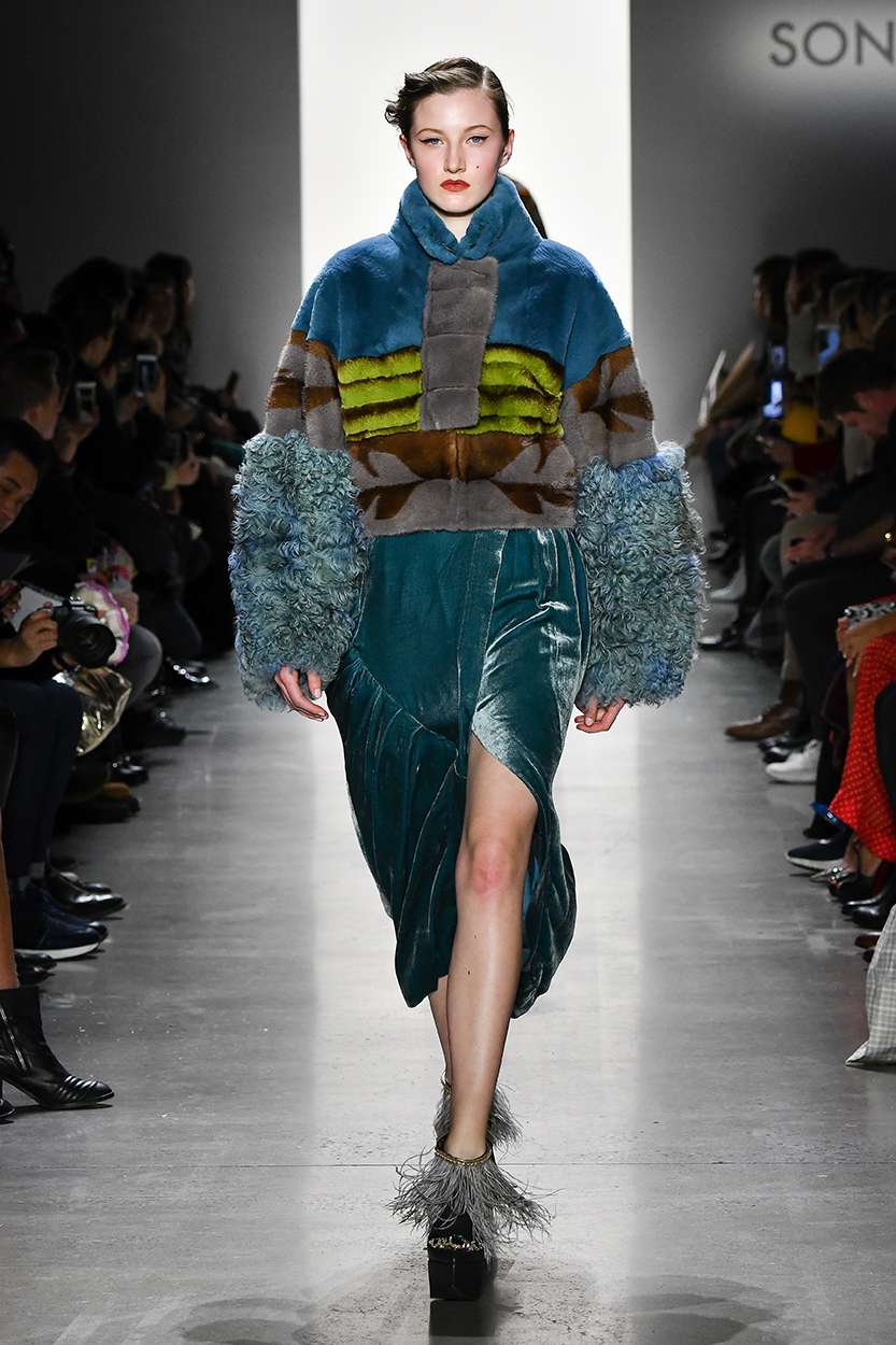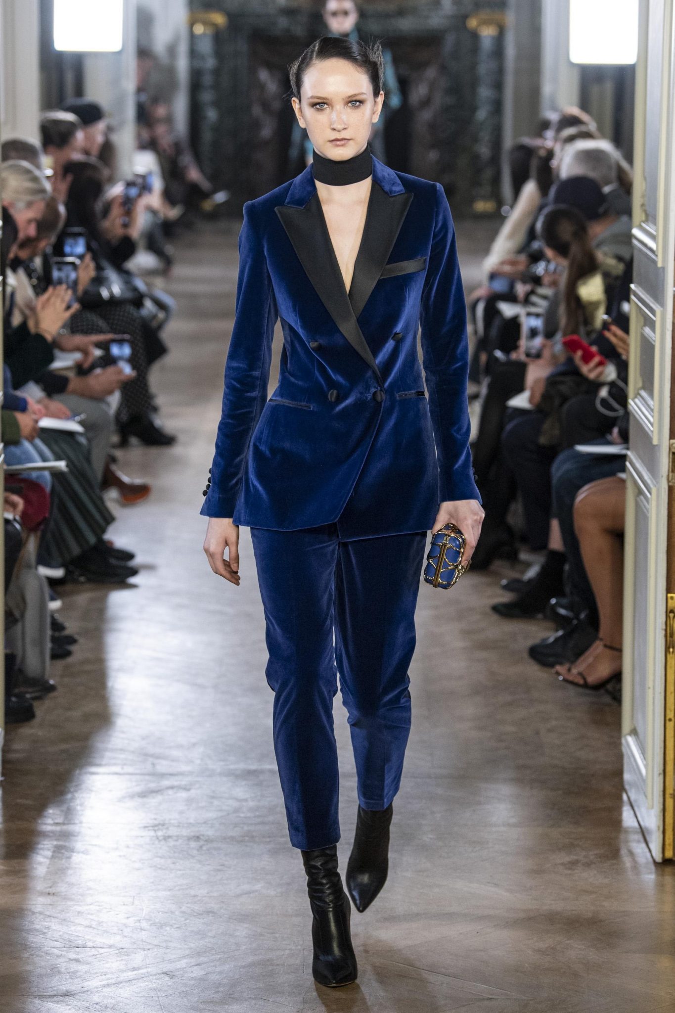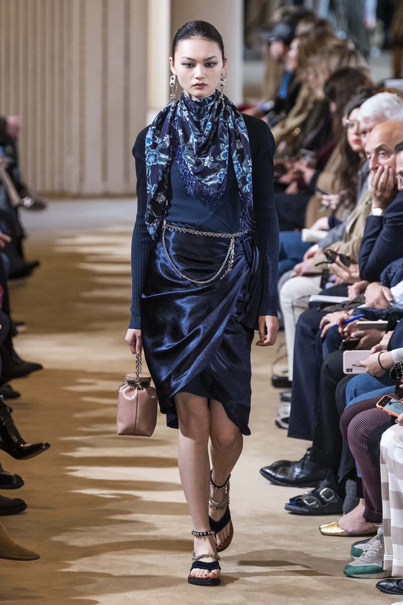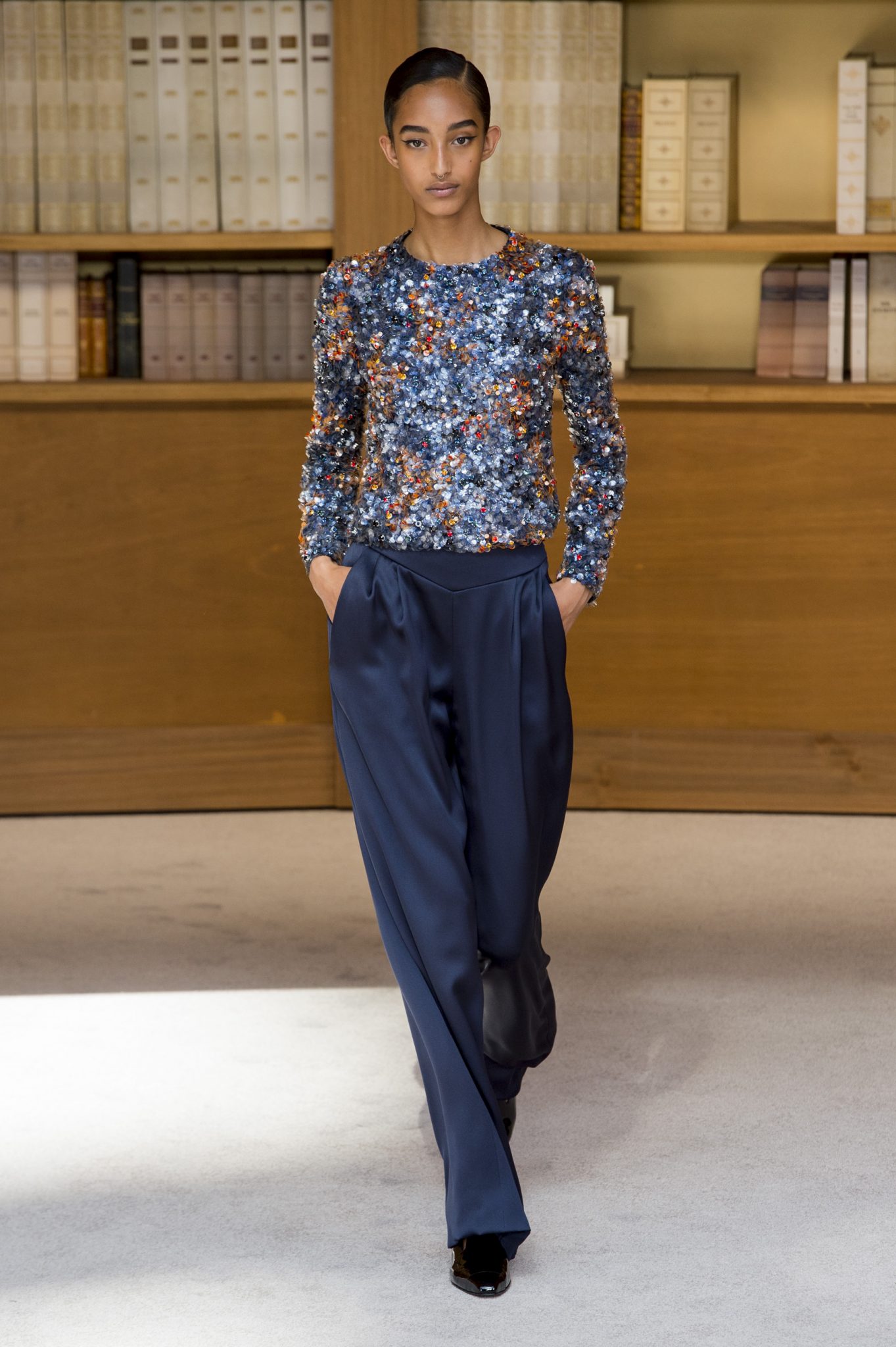 Παγιέτες, πούλιες, χάντρες, αλλά και σατέν, και βελούδα, όλα τα υλικά βρίσκονται στην υπηρεσία ενός χρώματος: του μπλε…