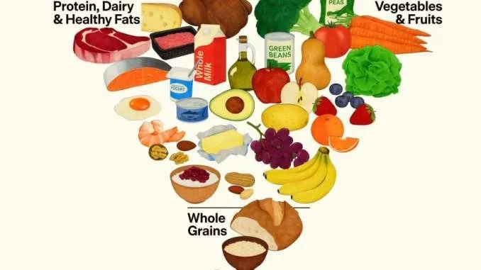 Η διατροφική πυραμίδα 2025–2030 παρουσιάζει μια ριζικά ανεστραμμένη προσέγγιση σε σχέση με τις παραδοσιακές μορφές.