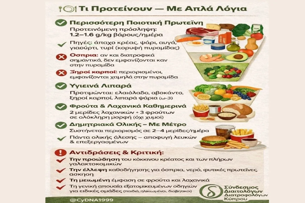 Όπως επισημαίνει ο Σύνδεσμος Διαιτολόγων και Διατροφολόγων Κύπρου, η υγεία δεν χτίζεται με ιδεολογίες ή απλουστευμένες πυραμίδες, αλλά με ισορροπία, επιστημονική τεκμηρίωση και σεβασμό στις πραγματικές ανάγκες του ανθρώπου.
