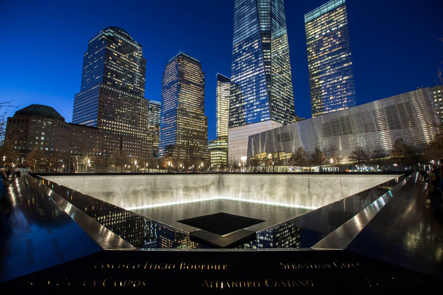 911 Memorial και Museum, One World Trade Center: Μετά από την επίσκεψη σας στο Wall Street, προχωρήστε βόρεια προς 911 Memorial, το πιο θλιβερό σημείο του Manhattan. Μνημείο και Μουσείο που τιμά τους πεσόντες από τις επιθέσεις της 11ης Σεπτεμβρίου 2001, όπου σκοτώθηκαν 2,977 και το βομβαρδισμό του World Trade Center το 1993, όπου σκοτώθηκαν 6 άτομα. Το μνημείο βρίσκεται στη τοποθεσία του World Trade Center, όπου υπήρχαν οι Δίδυμοι Πύργοι που καταστράφηκαν κατά τις τρομοκρατικές επιθέσεις της 11ης Σεπτεμβρίου. Ο Ισραηλινο-Αμερικανός αρχιτέκτονας Michael Arad της Handel Architects εργάστηκε με την εταιρεία αρχιτεκτονικής τοπίου-Peter Walker και Partners- για το σχεδιασμό και τη δημιουργία ενός δάσους από δένδρα άσπρου δρυ. Στο χώρο που ήταν τα Twin Towers δημιουργήθηκαν τετράγωνες αντανακλαστικές πισίνες. Τώρα υπάρχει το νέο κτίριο που ονομάστηκε One World Trade Center, το υψηλότερο κτίριο στη Βόρεια Αμερική. Εκεί υπάρχει παρατηρητήριο, όπου μπορείτε να δείτε το Manhattan και το New Jersey στην απέναντι όχθη του Hudson River.