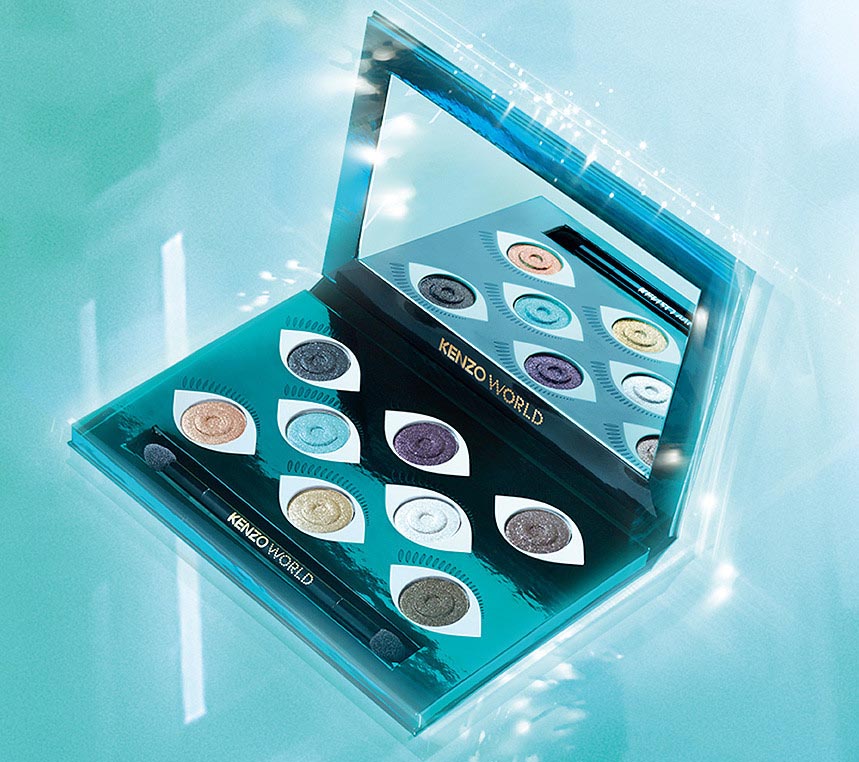 Η παλέτα σκιών Kenzo World Eyeshadow Palette σχεδιάστηκε από το καλλιτεχνικό δίδυμο του brand, την Carol Lim και τον Humberto Leon. Περιλαμβάνει οκτώ λαμπερές αποχρώσεις, που κυμαίνονται από τα πιο κολακευτικά γήινα και ουδέτερα χρώματα, μέχρι το highlighter λευκό.