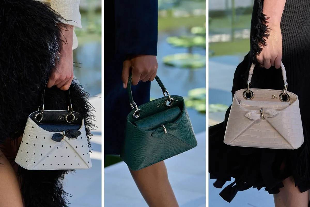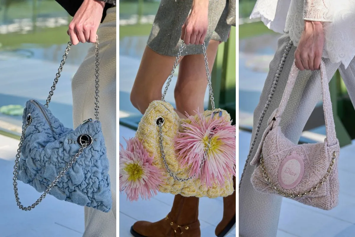 Η δημιουργική αυτή διάθεση θυμίζει έντονα την αισθητική που ανέπτυξε στον Loewe. Ωστόσο, ο σχεδιαστής φρόντισε να διατηρήσει την ισορροπία με τους βασικούς εμπορικούς κώδικες του Dior: Το καπιτονέ βελούδο, το tweed και οι μεταλλικές αλυσίδες. Έτσι, η συλλογή παρέμεινε πιστή στην ταυτότητα του οίκου, ακόμη και όταν πειραματιζόταν.