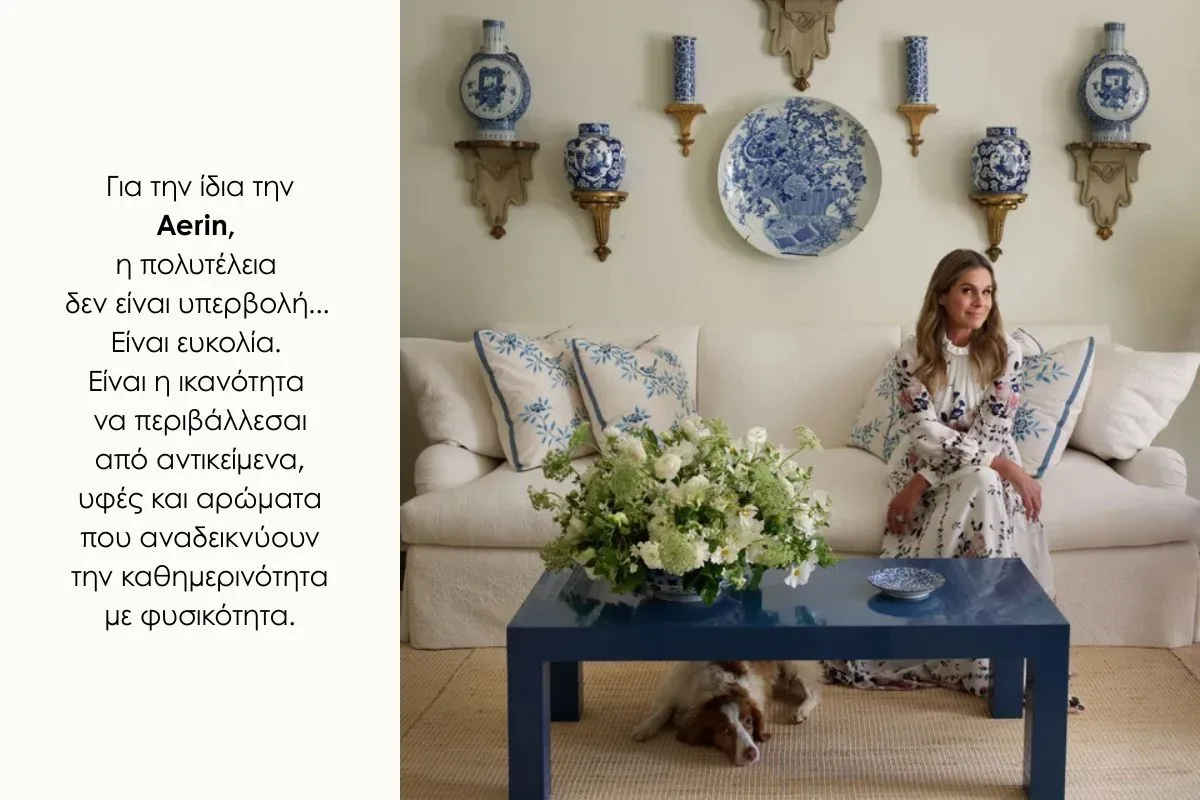 Σήμερα, η Aerin, το lifestyle brand της Aerin Lauder- που δημιούργησε το 2012- είναι ο καθρέφτης της ψυχής της… Μια γιορτή της θηλυκότητας, της κομψότητας και της προσωπικής αισθητικής, όπου κάθε άρωμα γίνεται ένα ταξίδι συναισθημάτων. Με κληρονομιά της το εμβληματικό beauty brand της γιαγιάς της, η Aerin μεταφέρει μια παράδοση αριστείας, ενώ ταυτόχρονα εκφράζει ένα απόλυτα προσωπικό όραμα. Για την ίδια την Aerin, η πολυτέλεια δεν είναι υπερβολή… Είναι ευκολία… Είναι η ικανότητα να περιβάλλεσαι από αντικείμενα, υφές και αρώματα που αναδεικνύουν την καθημερινότητα με φυσικότητα.