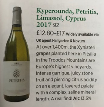 Η σημαντική αυτή αναγνώριση προστίθεται σε μια σειρά πολλών άλλων διακρίσεων που έλαβε κατά καιρούς το Οινοποιείο Κυπερούντας. Ταυτόχρονα αναδεικνύει την υψηλή ποιότητα των κρασιών του τόπου μας και ενισχύει την θέση της Κύπρου στον παγκόσμιο οινικό χάρτη. Βέβαια, είναι η δεύτερη φορά που ο «Πετρίτης» συγκαταλέγεται σε παρόμοια λίστα. Να θυμήσουμε ότι στο τεύχος Ιανουαρίου 2017 ήταν ανάμεσα στα 50 πιο εντυπωσιακά κρασιά κάτω των £50.