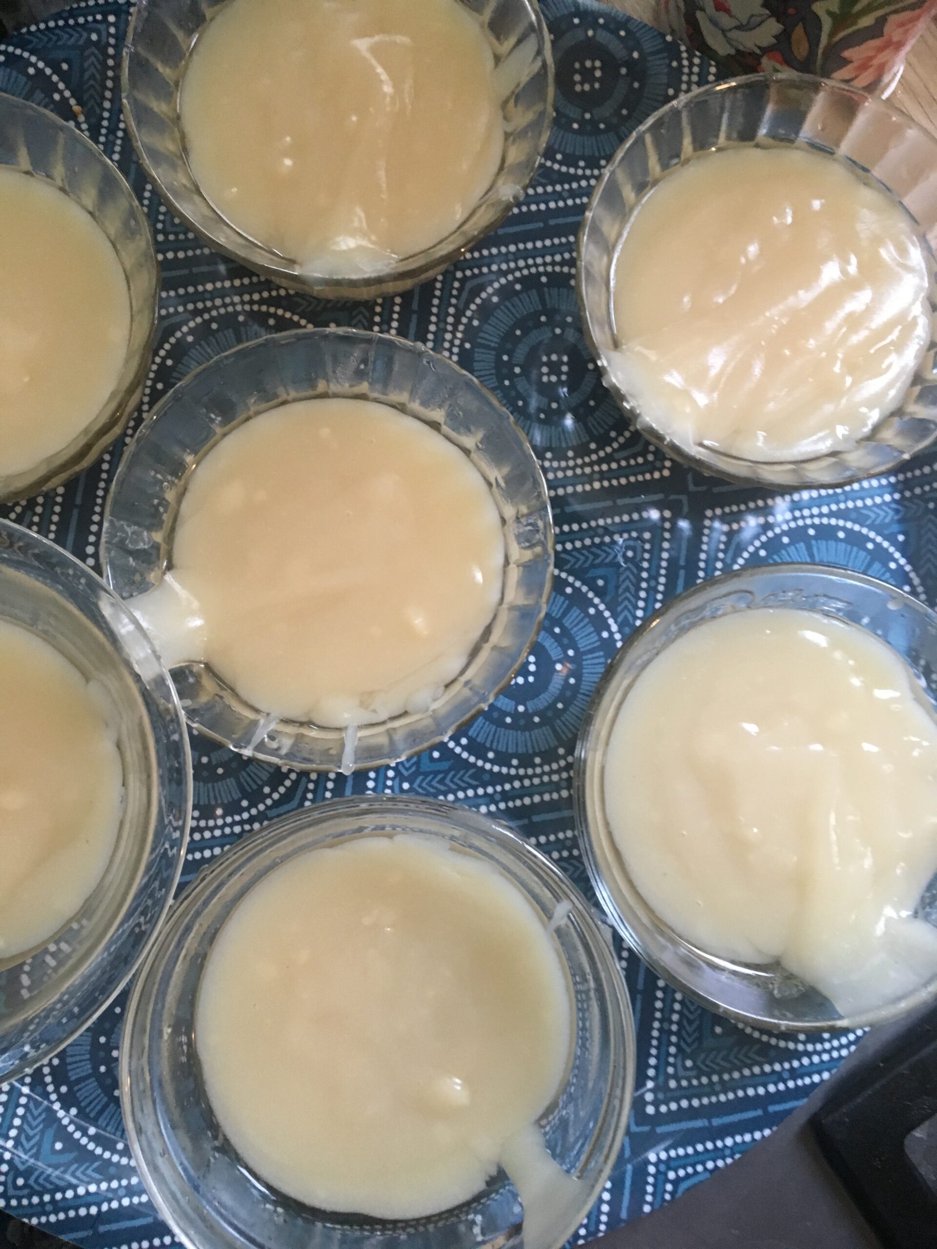 ♦ Αποσύρουμε από τη φωτιά, προσθέτουμε τα αμύγδαλα (όχι τα φιλέ), ανακατεύουμε και αμέσως τον μοιράζουμε σε ατομικά μπολάκια. Διαφορετικά θα κάνει κρούστα.