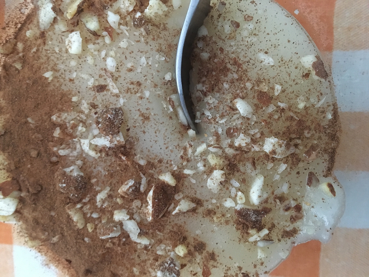 ♦ Πασπαλίζουμε με κανέλα, τα αμύγδαλα και είναι έτοιμος για να τον απολαύσουμε ζεστό ή και κρύο, αργότερα, αφού θα τον βάλουμε στο ψυγείο.