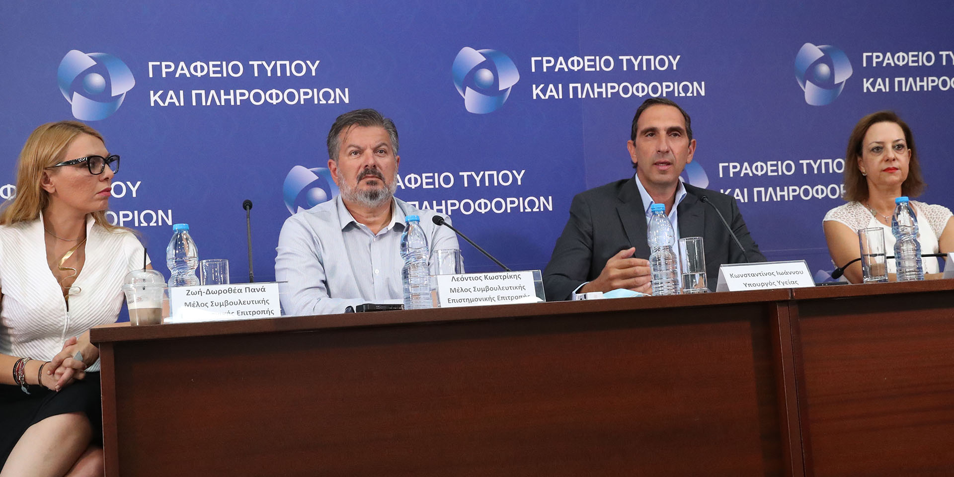 Ο Υπουργός Υγείας κ. Κωνσταντίνος Ιωάννου παραθέτει συνέντευξη Τύπου για τις τελευταίες εξελίξεις για την πανδημία του κορωνοϊού. Γραφείο Τύπου και Πληροφοριών (Αμφιθέατρο «Θεόφιλος Γεωργιάδης»), Λευκωσία, Κύπρος