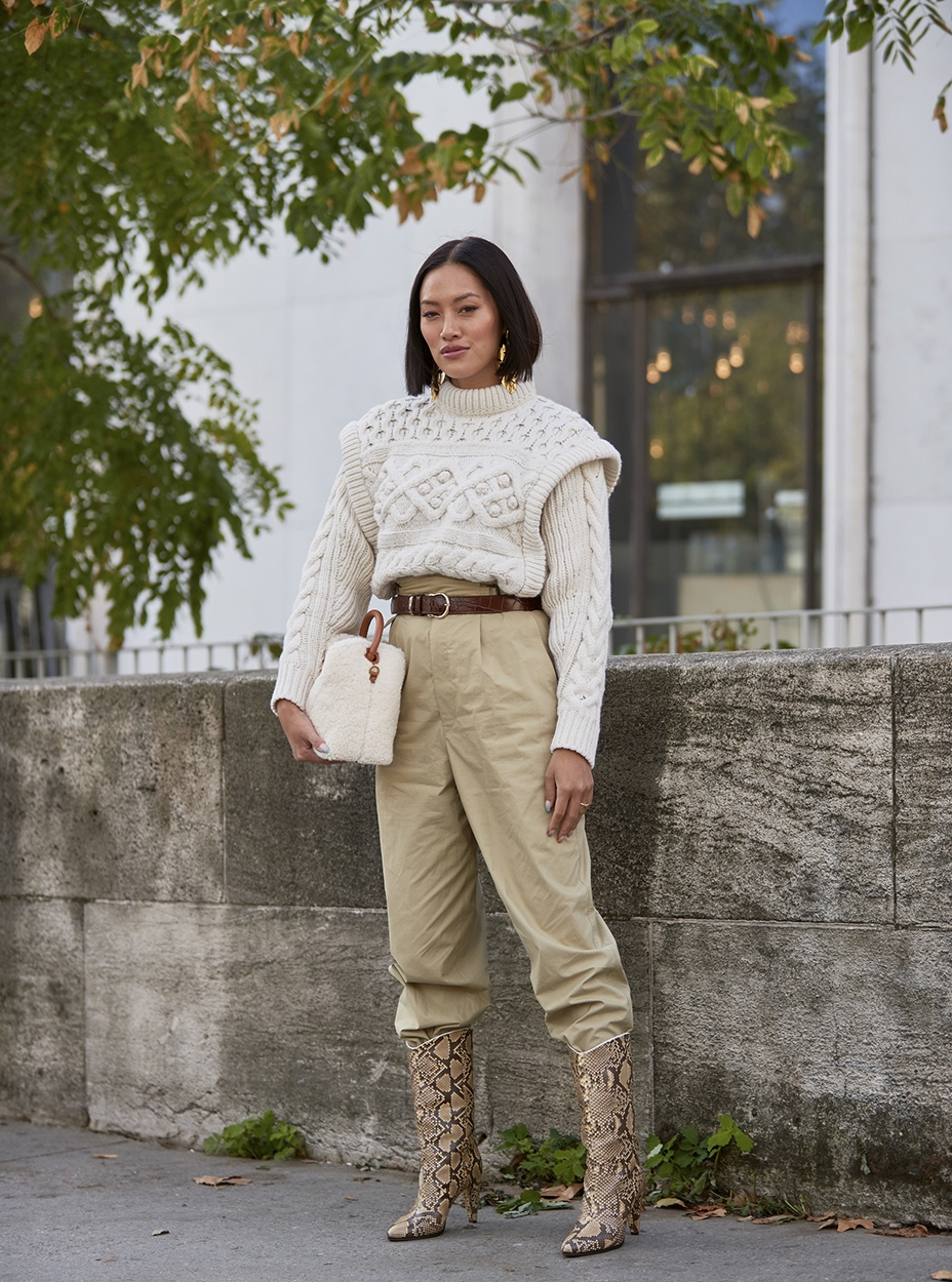 Εναλλακτικά, ένα πλεκτό πουλόβερ μέσα από το ψηλόμεσο σου παντελόνι θα ήταν ιδανικό σε μια casual εμφάνιση, συνδυασμένη με μπότες και ένα εντυπωσιακό oversized μπουφάν.