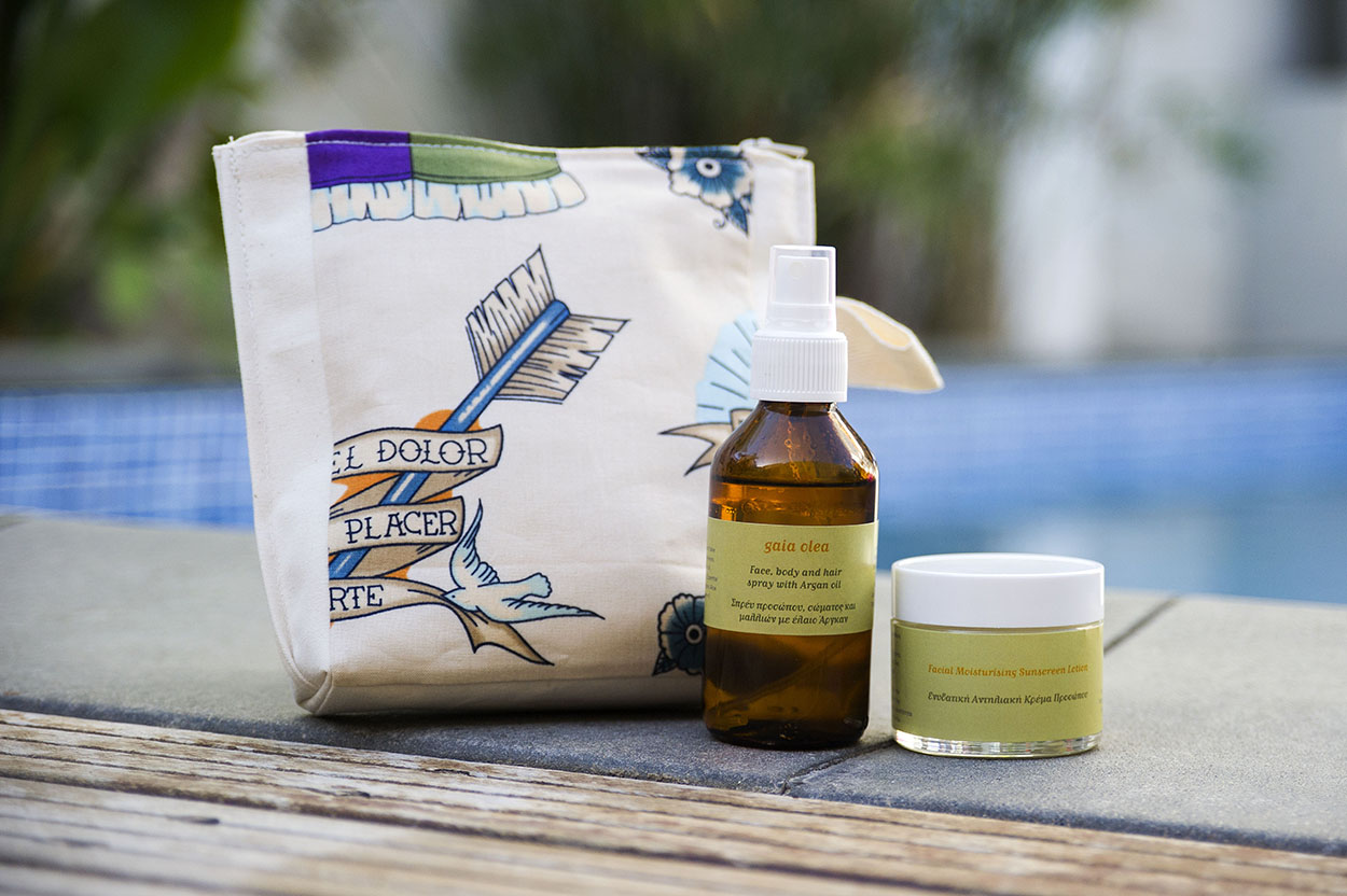 Βέβαια, για προστασία από τον ήλιο πήραμε την ενυδατική, αντηλιακή κρέμα προσώπου της Gaia Olea, και το Face Body and Hair Spray, ένα θαυματουργό σπρέι προσώπου, σώματος και μαλλιών με Argan oil, rosewater, aloe vera, και jojoba oil που προστατεύει και ενυδατώνει.
