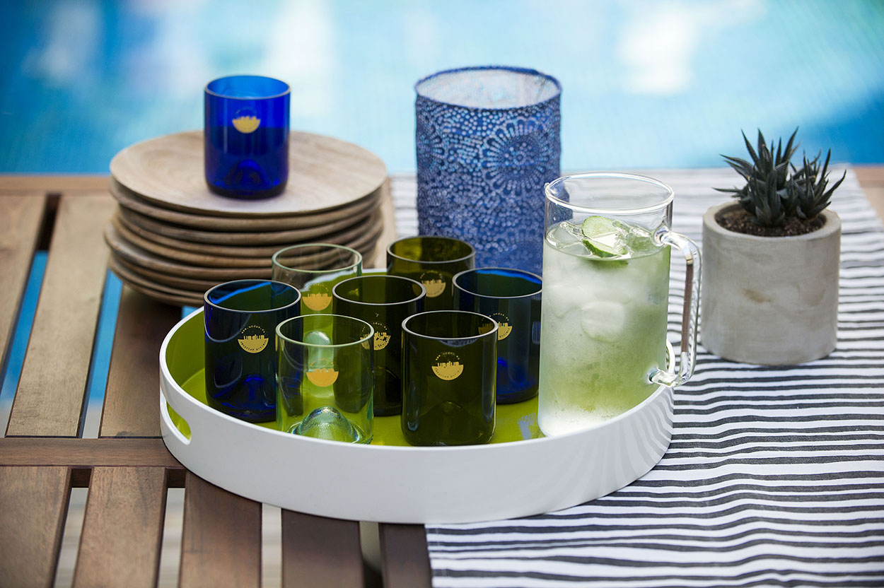 Και για όσους διψάσουν, προνοήσαμε και φτιάξαμε αρωματικό νερό με αγγουράκι και δυόσμο, για να τους το προσφέρουμε σε ποτήρια από ανακυκλωμένα μπουκάλια, που φτιάχνουν οι κύπριοι δημιουργοί της undun eu.