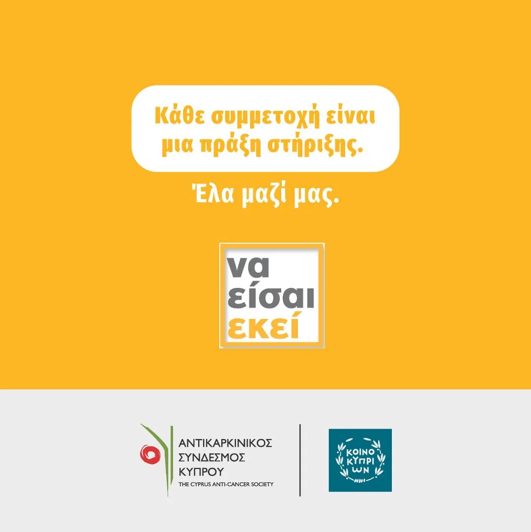 Ο Αντικαρκινικός Σύνδεσμος Κύπρου και η Τράπεζα Κύπρου καλούν όλη την κοινωνία να «είναι εκεί», στηρίζοντας έμπρακτα αυτή την κορυφαία στιγμή συλλογικής προσφοράς.