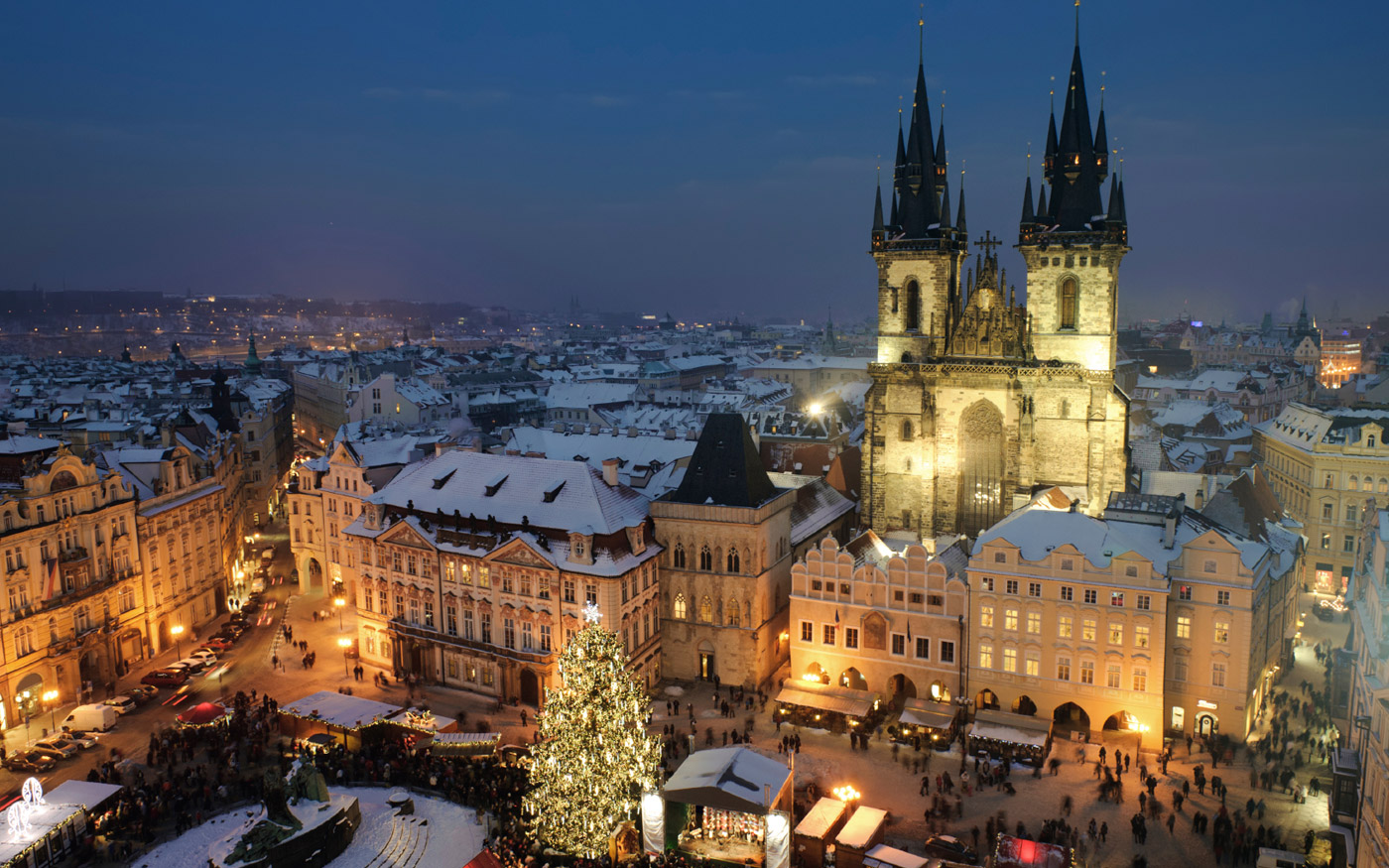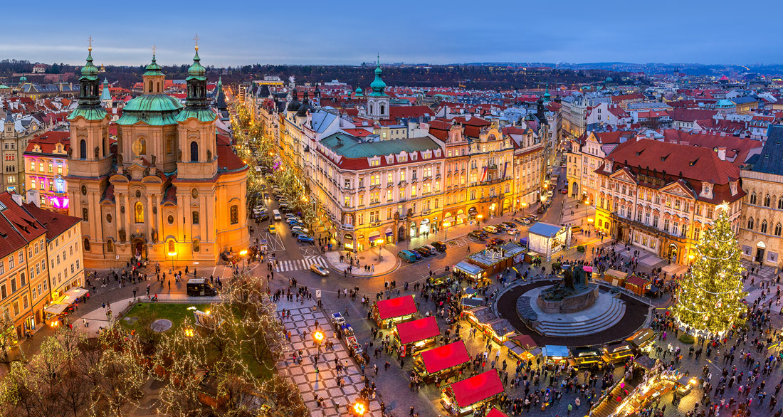 Οι βόλτες σου στο κέντρο της πόλης θα σου μείνουν αξέχασες. Οι χριστουγεννιάτικες αγορές θα σε δελεάσουν να περάσεις αρκετό χρόνο εκεί, χαζεύοντας παιχνίδια, χειροποίητα αντικείμενα, κάρτες, ξύλινες κατασκευές, αλλά και τις σπεσιαλιτέ της πόλης. Αυτές τις μέρες, φαγητά και γλυκά θα έχουν την τιμητική τους, με πρωταγωνιστές τα παραδοσιακά μπισκότα, τα γλυκά τρντέλνικ (trdelník) που μοιάζουν με γεμιστά κρουασάν, σε κυλινδικό σχήμα. Θα δοκιμάσεις επίσης τα dumplings με βατόμουρα, τα πικάντικα λουκάνικα και τις ξανθές ή μαύρες μπίρες. Μερικές από αυτές θα ανακαλύψεις σε κιόσκια και μπυραρίες, στις πλατείες Old Town Square, Wenceslas Square, Náměstí Republiky, Náměstí Míru, Vyšehrad.