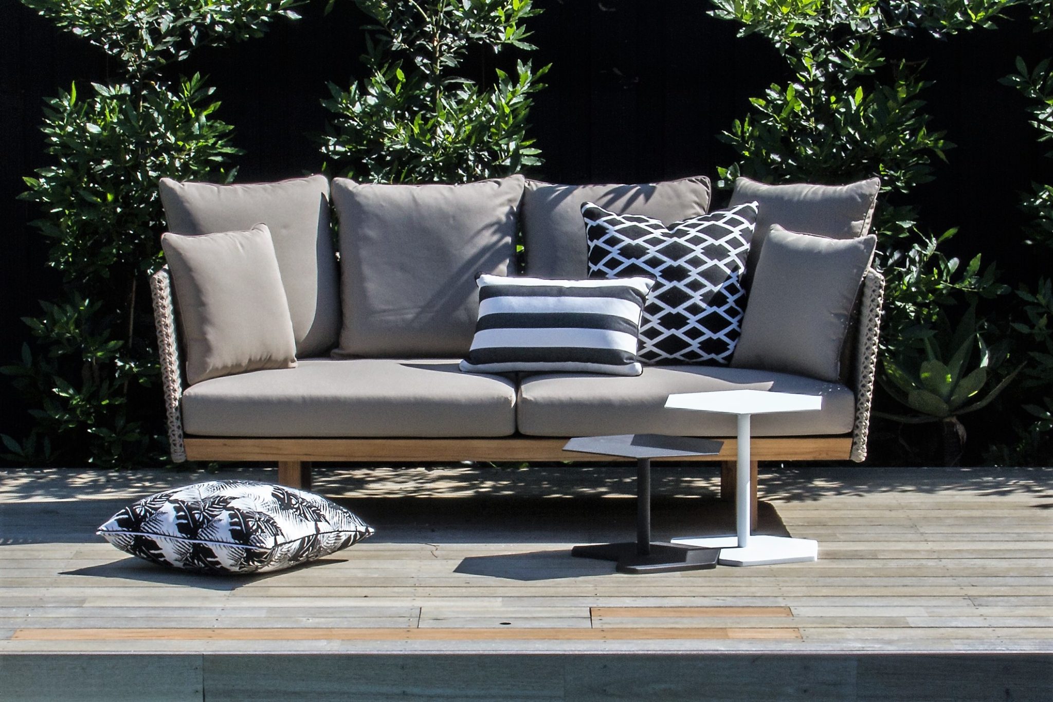Για να έχετε τη μέγιστη δυνατή χρήση των επίπλων σας, θέλετε να μπορείτε να τα χρησιμοποιείτε ανά πάσα στιγμή και να μην χρειάζεται να μετακινείτε μαξιλάρια μέσα και έξω από τη βροχή… Αξίζει λοιπόν, να επενδύσετε σε υφάσματα εξωτερικής χρήσης όπως το Sunbrella, τα οποία στεγνώνουν γρήγορα και δεν συγκρατούν υγρασία.