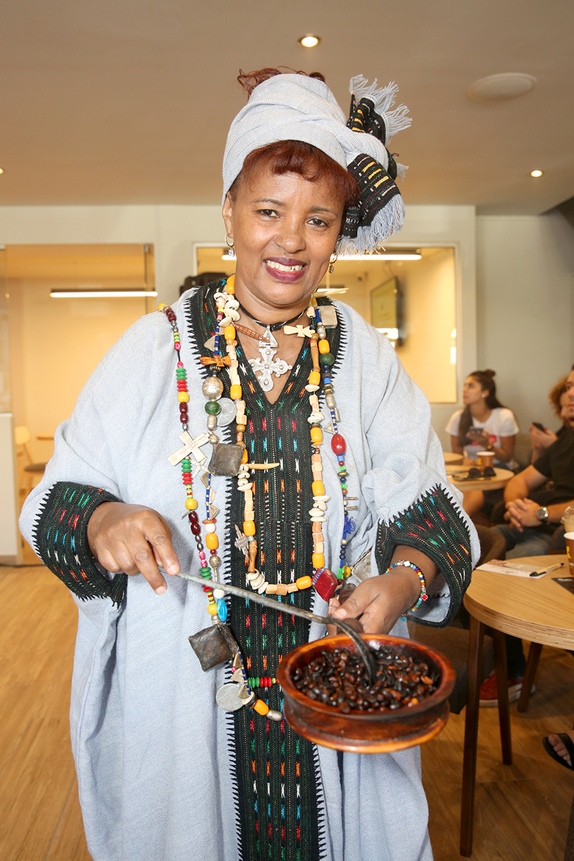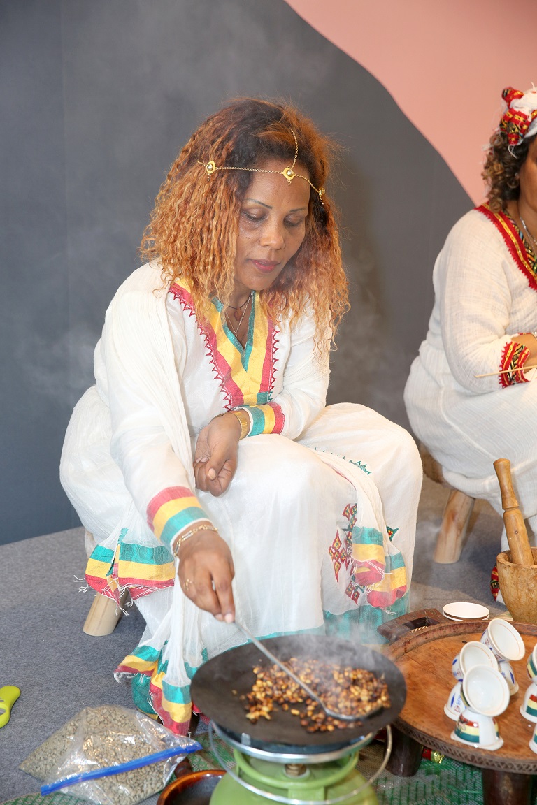 Η παραδοσιακή τελετή καλωσορίσματος περιλάμβανε τη διαδικασία καβουρδίσματος κόκκων καφέ και σερβιρίσματος σε παραδοσιακά σκεύη, με συνοδεία από παραδοσιακό ψωμί και ποπ κορν. Μέσα από τα έμπειρα χέρια των ξεχωριστών καλεσμένων από την Αιθιοπία, όλοι οι παρευρισκόμενοι έζησαν για λίγο την πραγματική μαγεία της αυθεντικής αιθιοπικής φιλοξενίας. Με παραδοσιακές στολές και αντικείμενα εμπνευσμένα από την κουλτούρα της Αιθιοπίας, μύησαν όλους τους παρευρισκόμενους στα μυστικά του παραδοσιακού καφέ και των εθίμων του τόπου τους.