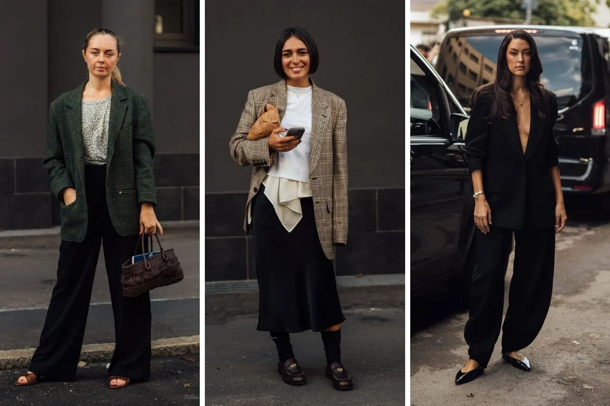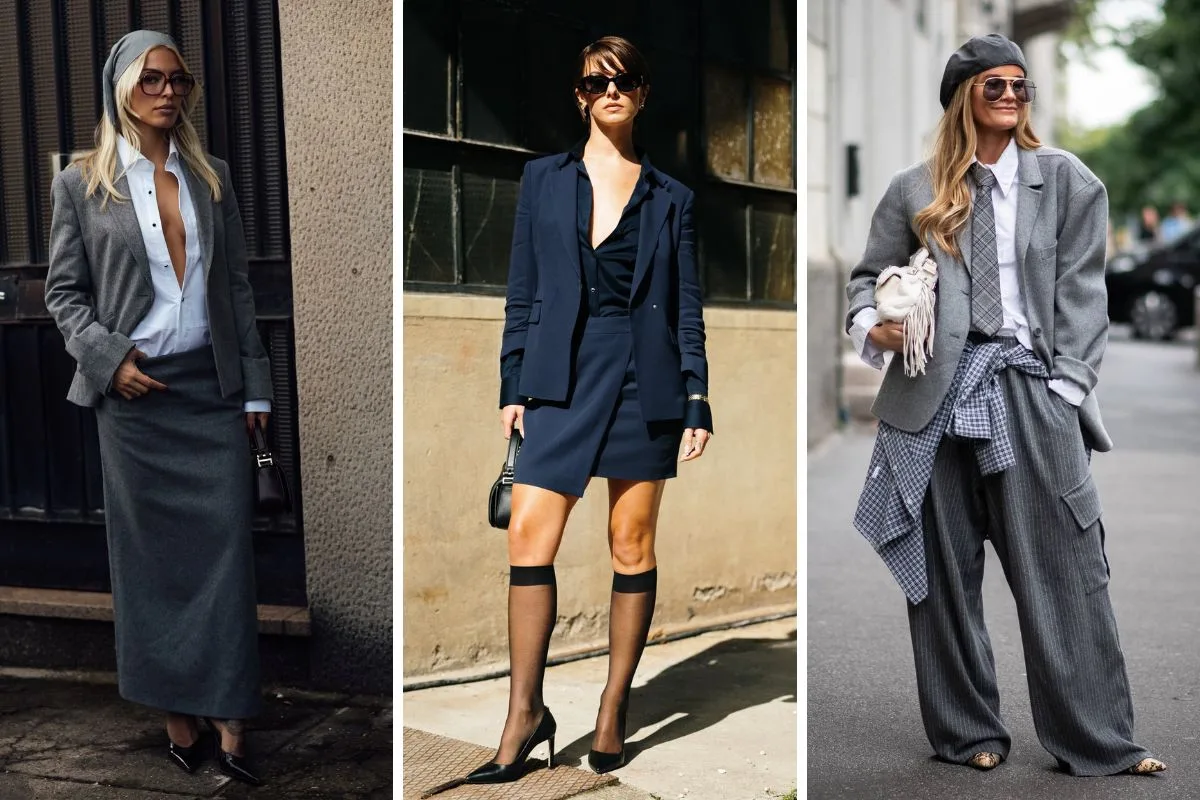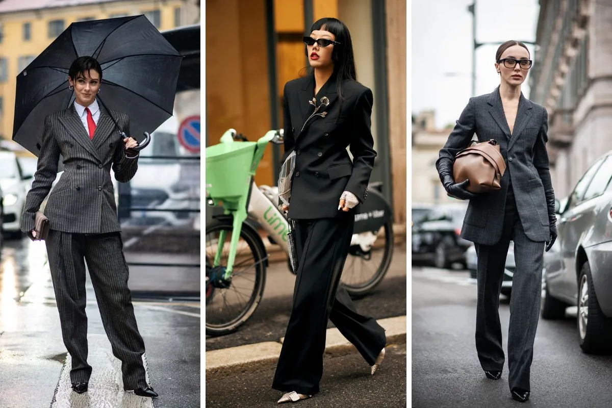 Το tailoring ανανεώθηκε: Oversized blazers με αυστηρές γραμμές και φαρδιά παντελόνια έδωσαν μια πιο χαλαρή αίσθηση… Αλλά και στις πιο τολμηρές εκδοχές τους με σορτς και βερμούδες έκαναν εμφανή την παρουσία τους.Οι fashionistas επέλεξαν ουδέτερα χρώματα όπως το γκρι και το camel, σπασμένο λευκό, αλλά και δυναμικό μπλέ, πράσινο ή κόκκινο. Κι έδωσαν το στιλιστικό στίγμα τους, με κλασικά και μοντέρνα στοιχεία στο design.Άλλες έκλεψαν τις εντυπώσεις με boxy blazers που τα συνδύασαν με βερμούδα. Κάποιες άλλες επίλεξαν oversized λευκό κοστούμι, για μια power εμφάνιση με playful διάθεση.