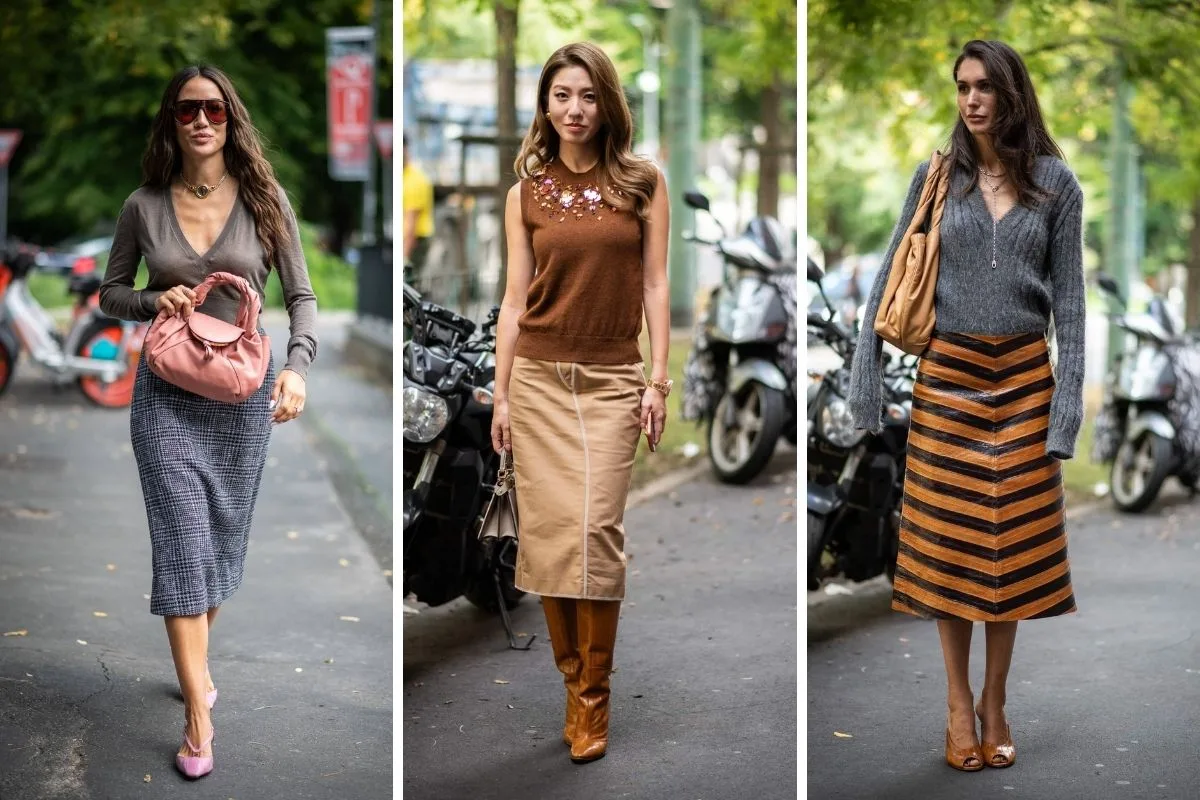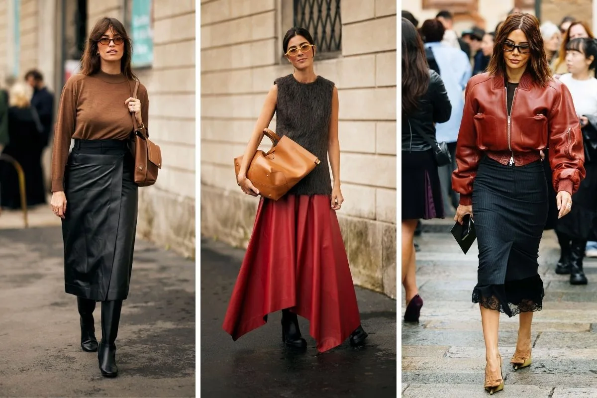 Οι φούστες κυριάρχησαν στο Μιλάνο… Με midi μήκος και ασύμμετρες γραμμές, τα it girls έδωσαν το σύνθημα… Και επίλεξαν κυρίως τις μεταξωτές, midi φούστες, τις mini δερμάτινες, αλλά και τις πλεκτές. Τις συνδύασαν με πουκάμισα, με oversized σακάκια και πλεκτά ή minimal top, αφήνοντας χώρο στις φούστες να πρωταγωνιστήσουν. Χρώματα όπως το camel και το λευκό ήταν ιδιαίτερα δημοφιλή. Και προτίμησαν υφές, που κυμαίνονταν από μετάξι μέχρι δερμάτινο.Σημείωσε πως η Gwyneth Paltrow, με Gucci σύνολο, απέδειξε ότι το two-piece look είναι το νέο φόρεμα… Οι fashionistas επιλέγοντας μια animal print φούστα με ένα απλό, λευκό πουκάμισο, αποδεικνύουν ότι το street style ξέρει να παίζει με ισορροπίες.