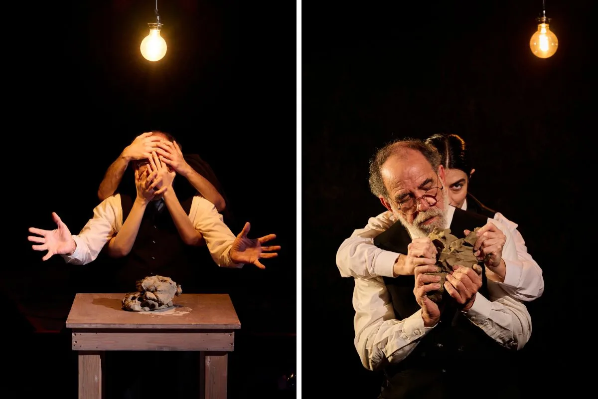 Ο Φώτης Νικολάου, που υπογράφει τη σκηνοθεσία, προσεγγίζει τα Χίλια χέρια ως μια σκηνική αναμέτρηση του δημιουργού με τον ίδιο του τον εαυτό. Ο απολλώνιος Χαλεπάς συναντά τον διονυσιακό Σάτυρο, και εκεί ακριβώς το παρόν και το μέλλον, η τρέλα και η δημιουργία, η αλήθεια και η ψευδαίσθηση γίνονται ένα. Η σκηνή μετατρέπεται σε έναν τόπο ύλης και μνήμης, όπου πηλός και μάσκα γίνονται σώμα, αποτύπωμα, πληγή και προσευχή. Τα όρια του δημιουργού και του δημιουργήματος συγχέονται. Η έμπνευση μοιάζει με κατάρα και η τέχνη με ένα τελευταίο νεύμα αντίστασης απέναντι στη φθορά.
