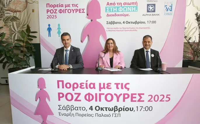 Europa Donna Κύπρου: Από τη Σιωπή στη Φωνή. Διεκδικούμε. Στις 4 Οκτωβρίου, στην 21η Πορεία με τις Ροζ Φιγούρες θα περπατήσουμε μαζί για να σπάσουμε τη σιωπή, για όλα όσα καταφέραμε να πετύχουμε, και τις ουσιαστικές αλλαγές που χρειάζεται να γίνουν. Η Alpha Bank Κύπρου από φέτος θα είναι στρατηγικός