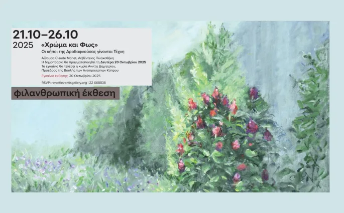 Ο Αντικαρκινικός Σύνδεσμος Κύπρου και η Λεβέντειος Πινακοθήκη παρουσιάζουν την έκθεση «Χρώμα και Φως: Οι κήποι της Αροδαφνούσας γίνονται Τέχνη», μια ξεχωριστή πρωτοβουλία που ενώνει τον κόσμο της τέχνης με αυτόν της προσφοράς. Μάθε τώρα όλες τις ενδιαφέρουσες λεπτομέρειες για την έκθεση, και φρόντισε να μην την χάσεις… γιατί έχει