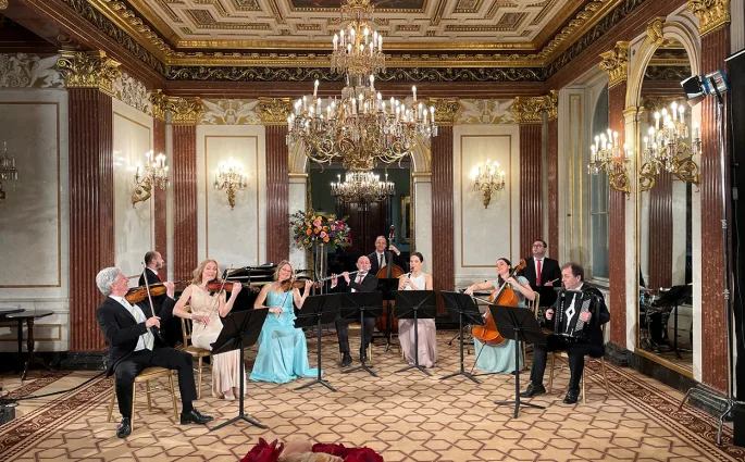 Ζήστε την Πρωτοχρονιά των Ανακτόρων της Βιέννης, στον υπέροχο κόσμο του Στράους! Οι Johann Strauss Virtuosi θα μας προσφέρουν με τη συναυλία τους το αληθινό άρωμα της αυτοκρατορικής Βιέννης. Η καθιερωμένη Πρωτοχρονιάτικη συναυλία της Βιέννης, προσελκύει τα βλέμματα θεατών σε όλο τον κόσμο καθώς, αποτελεί το σημαντικότερο γεγονός της Πρωτοχρονιάς.