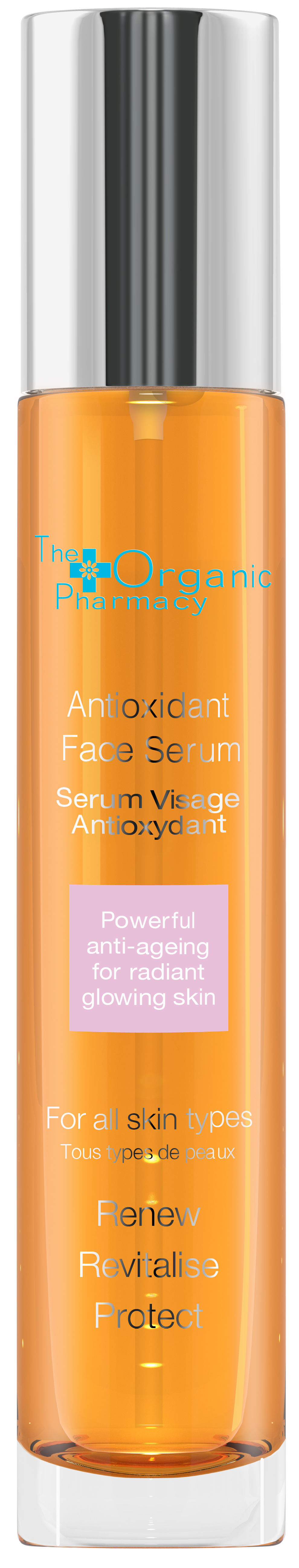 Και για να κάνετε ακόμη πιο αποτελεσματική την τελετουργία της περιποίησής σας, δοκιμάστε και το Antioxidant Face Serum. Η δύναμη από Rose Hip, Grapeseed, Άλφα Λιποϊκό Οξύ, DMAE, Καρότο και Γκρέιπφρουτ κάνουν αυτό το λαδάκι 50 φορές πιο δυνατό από ότι το Rose Hip μόνο του. Αντιστρέφει την ηλιακή βλάβη, ανορθώνει και τονώνει την επιδερμίδα, μειώνει τις ρυτίδες και περιορίζει τις ελεύθερες ρίζες. Δεν είναι τυχαίο άλλωστε που οι πιστοί fun της The Organic Pharmacy το βάφτισαν «λαδάκι άμεσου λίφτινγκ»! Και επίσης είναι κατάλληλο για όλους τους τύπους δέρματος.