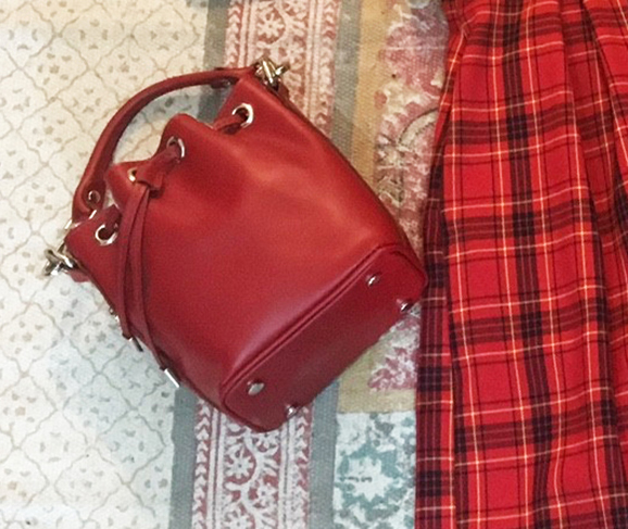 Για να ολοκληρώσεις το trendy look θα επιλέξεις ένα κόκκινο δερμάτινο τσαντάκι Ιταλικής προέλευσης, που δίνει έξτρα cool πόντους στο outfit σου. Έχε υπόψη σου ότι γίνεται και τσαντάκι ώμου χρησιμοποιώντας το ενσωματωμένο του λουράκι . (Θα το βρεις επίσης σε μπλε και καμηλό χρωματισμούς).