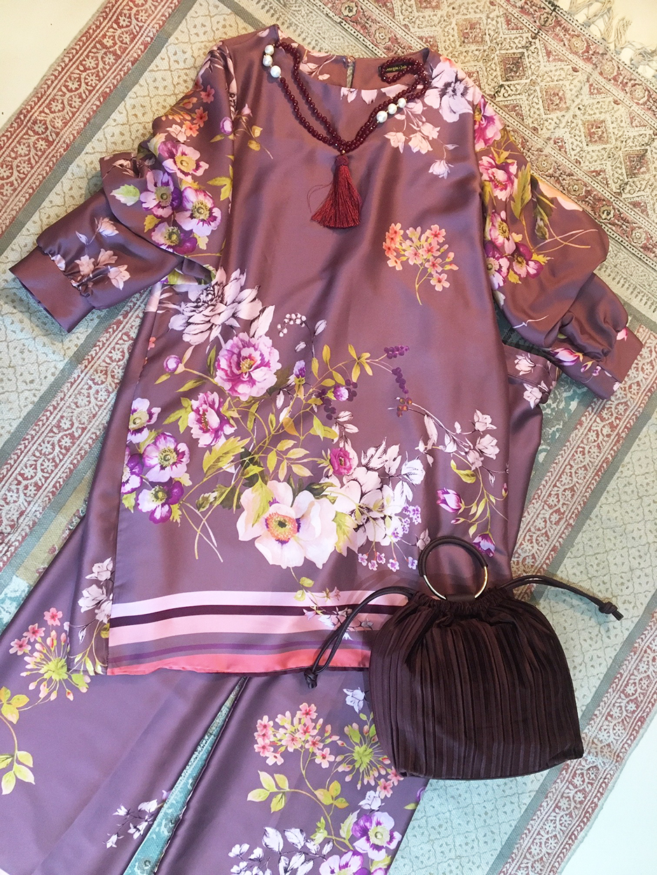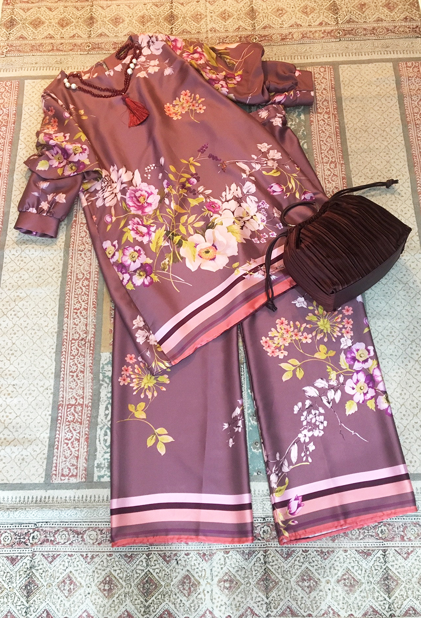Η χειμερινή ανάλαφρη απόχρωση του ροζ/μοβ, με τα floral prints, τονίζει το ιδιαίτερο style αυτού του συνόλου. Σημείωσε ότι τα δύο κομμάτια μπορούν να φορεθούν είτε μαζί είτε ξεχωριστά, δημιουργώντας μια εντυπωσιακή δύο σε ένα εμφάνιση. Και βέβαια, μπορείς να συνδυάσεις το παντελόνι μ’ ένα cozy ολόμαλλο ροζ πουλόβερ.